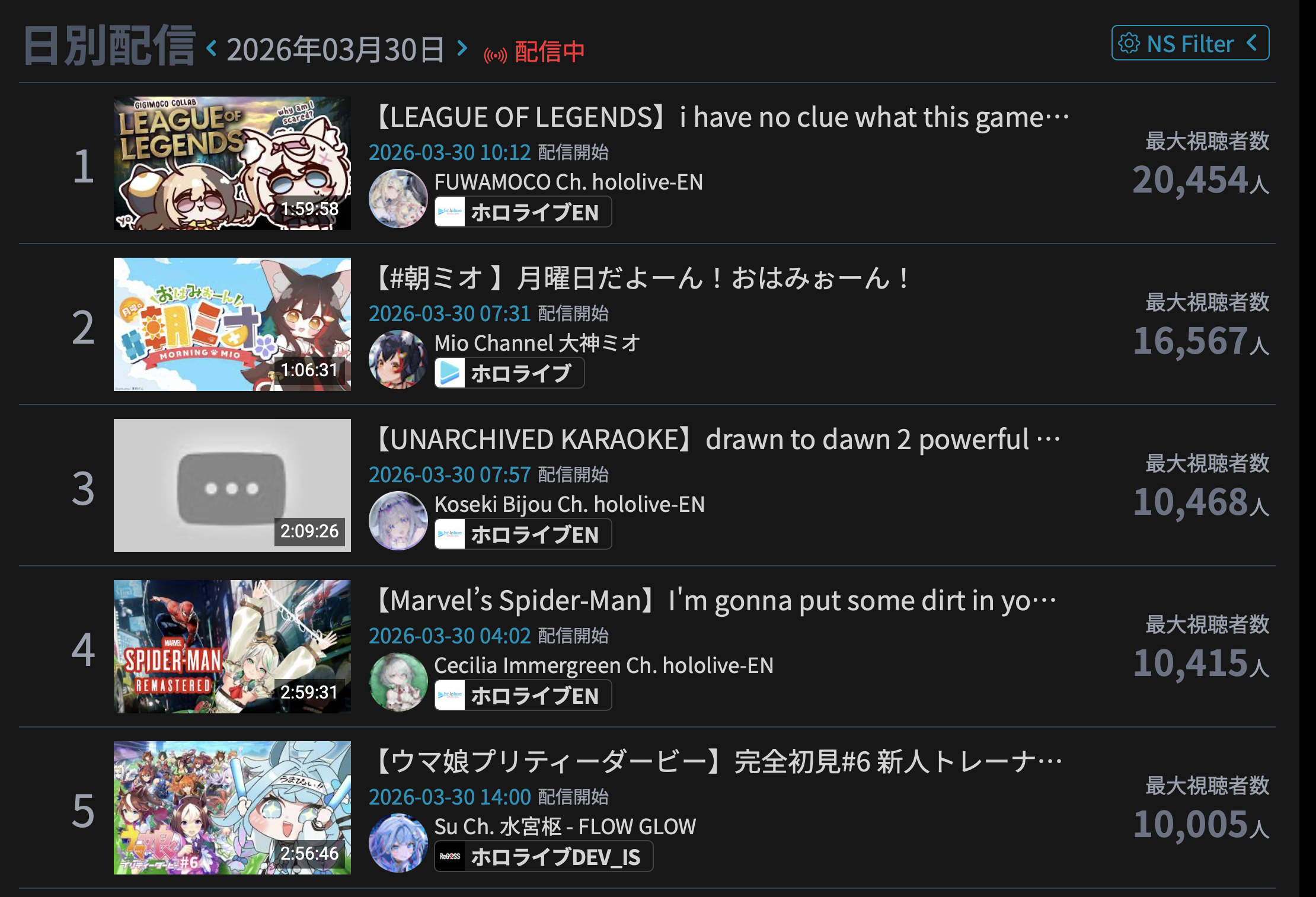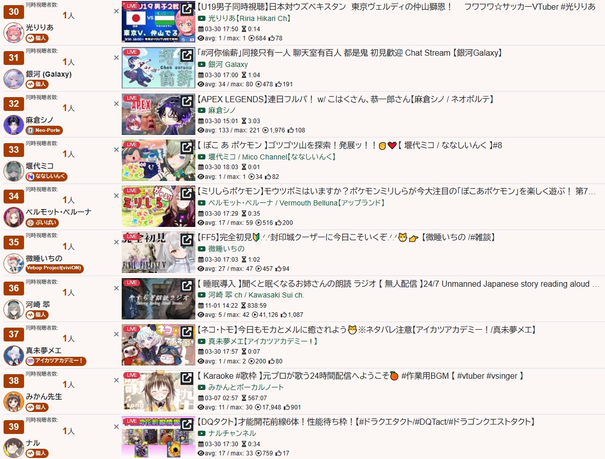 Every single saba stream since debut can fit on 3 pages.