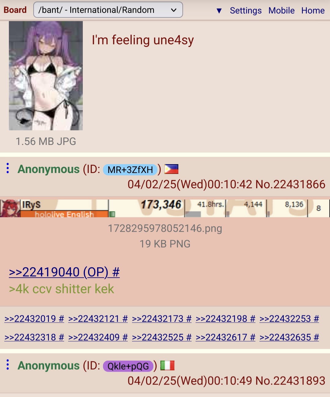 okay meidos, do ip nuke for last thread, i want to see how many IPs doing the cuckpost spam