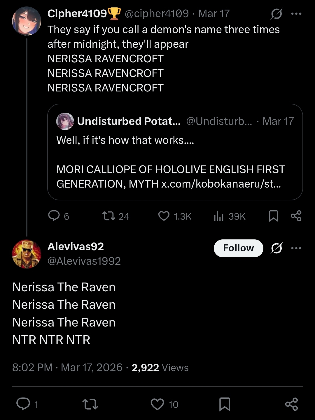 Raora sure does have a thing for nijifags..