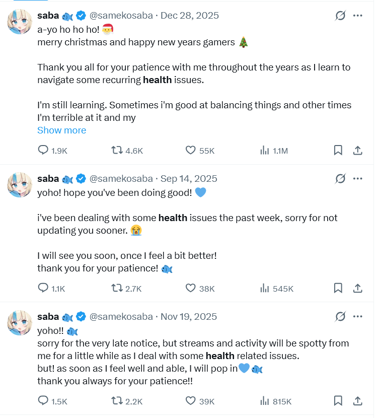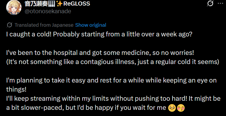 Apparently she went to the doctor after that time she postponed her collab with sora and the doctor told her to take a long break.