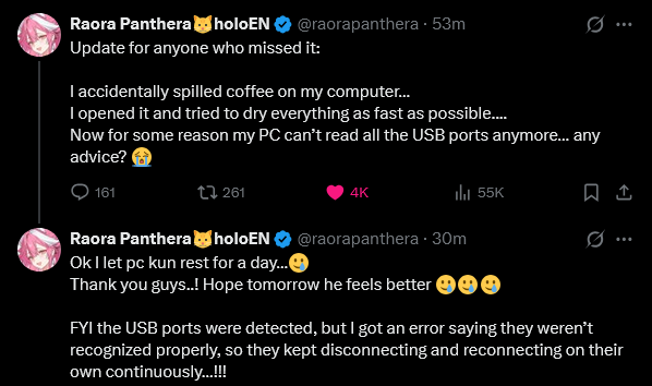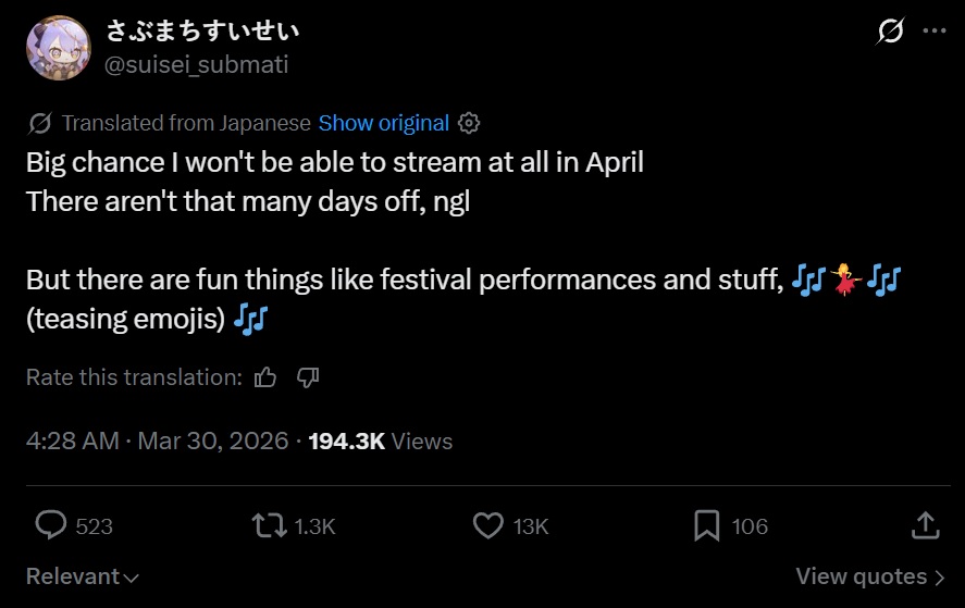 >suisei got a transfer (an exile desu)>suisei took a break>migo collab'd with the sisters>migo took a breakIt's joever. The empire has lost!