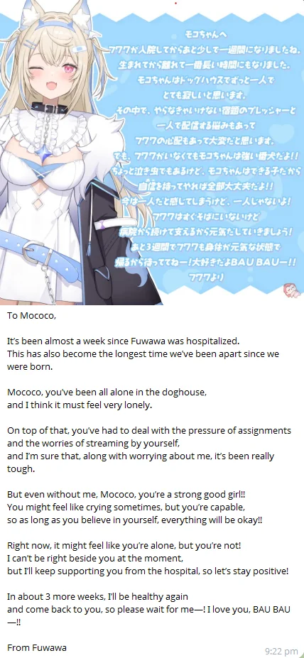 Thinking about it, I wonder if Mococo was extra clingy because she knew Fuwawa was going for her surgery https://youtube.com/watch?v=vXXDYRYF6v8