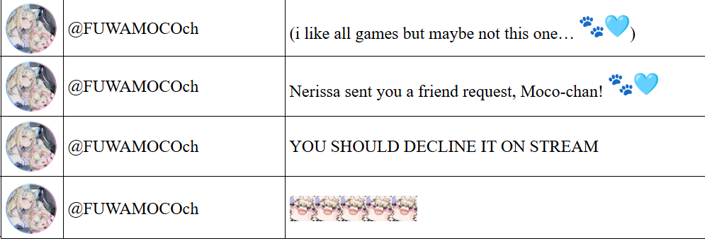 Fuwawa loves the ruffians but I'm not convinced mococo cares about us at all. She does stuffs for praise and forces everyone to thank her for it because she thinks she knows best whereas Fuwawa does everything for ruffians from the start.