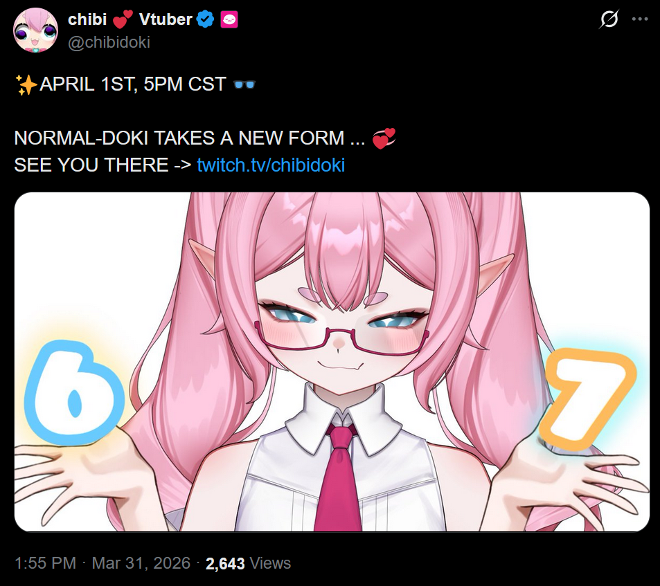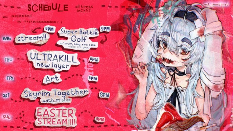 Birthday girl Edition>What is /lig/?/lig/ is a thread for viewers to find, share, and discuss indie vtubers who have on average 500 viewers or more.>Why /lig/?Large indie vtubers have more net fans, but they are outnumbered by 2views by the thousands. This is a thread for the VIP, regardless of what language they stream on.>Can I shill my 499view oshi here?Considering averages fluctuate widely, all the way down to 100 is reasonable. The minimal requirement however is being Twitch partner or the YouTube equivalent in numbers.>Wait isn't that one a corpo?/lig/ is a thread for chuubas of a decent size who aren't defined by their corporate branding, either due to the small size of the corporation or the independence and lack of oversight granted to the talents>/lig/ Numbershttps://lignumbers.neocities.org/>Twitch Clips Guidehttps://pastelink.net/34vd5>VOD Archival Guidehttps://rentry.org/Vod_Archival_Guide>/lig/ VOD Archivehttps://rentry.org/Indie_Vod_Archives_lig_>Koikatsu cardshttps://mega.nz/folder/JYtkXJwL#07gAQCQqI_9FsmX9oQJKSA>/lig/ Wheel of Nameshttps://wheelofnames.com/5jh-93j>Tiermakerhttps://tiermaker.com/create/-lig--16586688-3>/lig/ Chuuba Birthday Calendar (WIP)https://www.canva.com/design/DAE-XgWodVg/ofLz4QC1yPPQ4T6TTAE0fw/edit?utm_content=DAE-XgWodVg>Upcoming BirthdaysMarch 31st - Nina SaotomeApril 2nd - Honey GoblinApril 11th - Ume AinoApril 18th - SarueiApril 19th - Yoclesh & ZumaApril 23rd - Coqui & Limealicious & MomotexxApril 24th - Sugi AokiApril 27th - Peach MilkyMay 3rd - CharlottexBearMay 4th - Dya Rikku & ImakuniMay 6th - Nino Egyn>OC material for the OPhttps://mega.nz/folder/IIVD1IaJ#cfsRhWdJvzneIoG8HZUPuw>/lig/booruhttps://ligbooru.moe/>Duckshttps://www.twitch.tv/dashducks (embed) (embed) (embed) (embed)Other useful threads:>>>/vt//big/>>>/vt//corpo/>>>/vt//choc/>>>/vt//flip/>>>/vt//haha/>>>/vt//indie/>>>/vt//mint/>>>/vt//swarm/>>>/vt//vrt/>>>/vt//xvsj+/Previous Thread: >>110689320