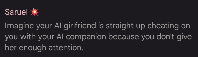 >ad for AI pet for your AI gf to keep her busy while you arnt around>saru is cuck posting about it Like viewer like streamer