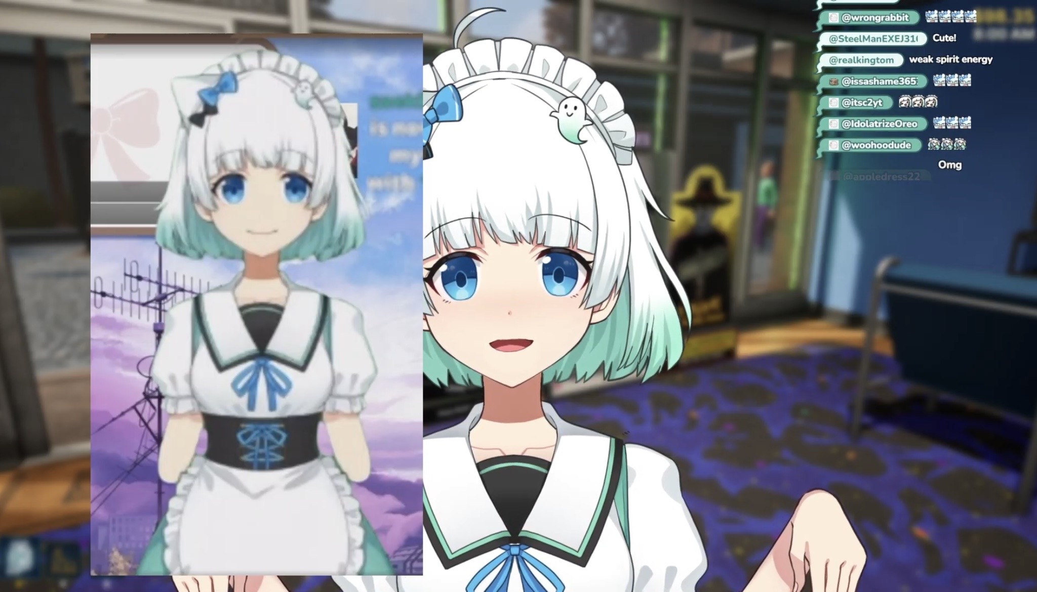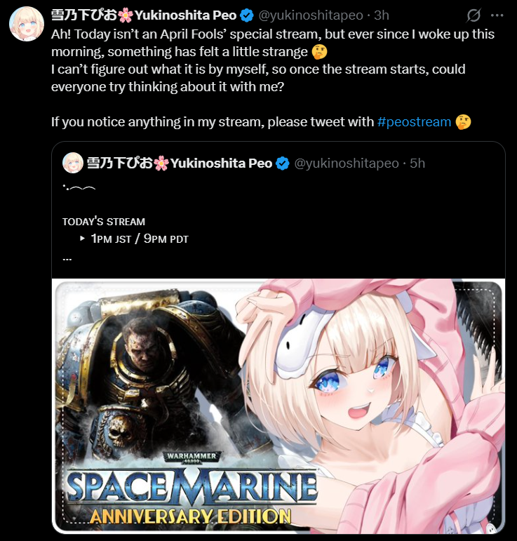 >>110709948She has no nose, and she accidently left her mic on for the starting soon screen which wasn't intentional