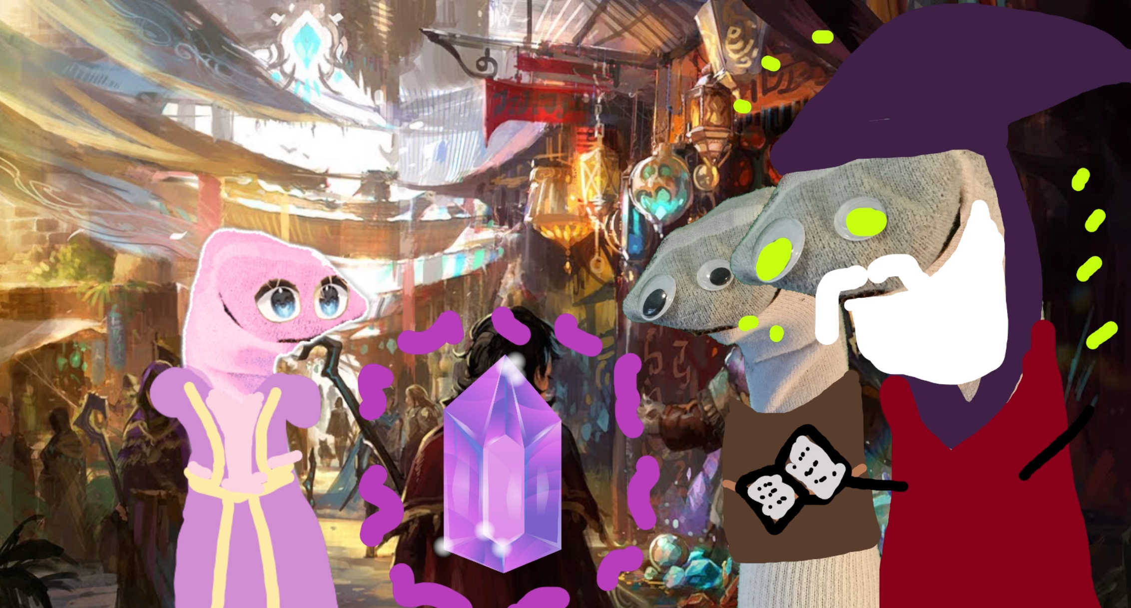 >>110709556I'm not an Olimpyan, but if I had to guess it looks like the sock puppets are running a gambling game in a sort of fantasy bizarre using Olivia Monroe's priceless gem as the buy in. A creative bit of vtuber live theater that the medium could use a lot more of.