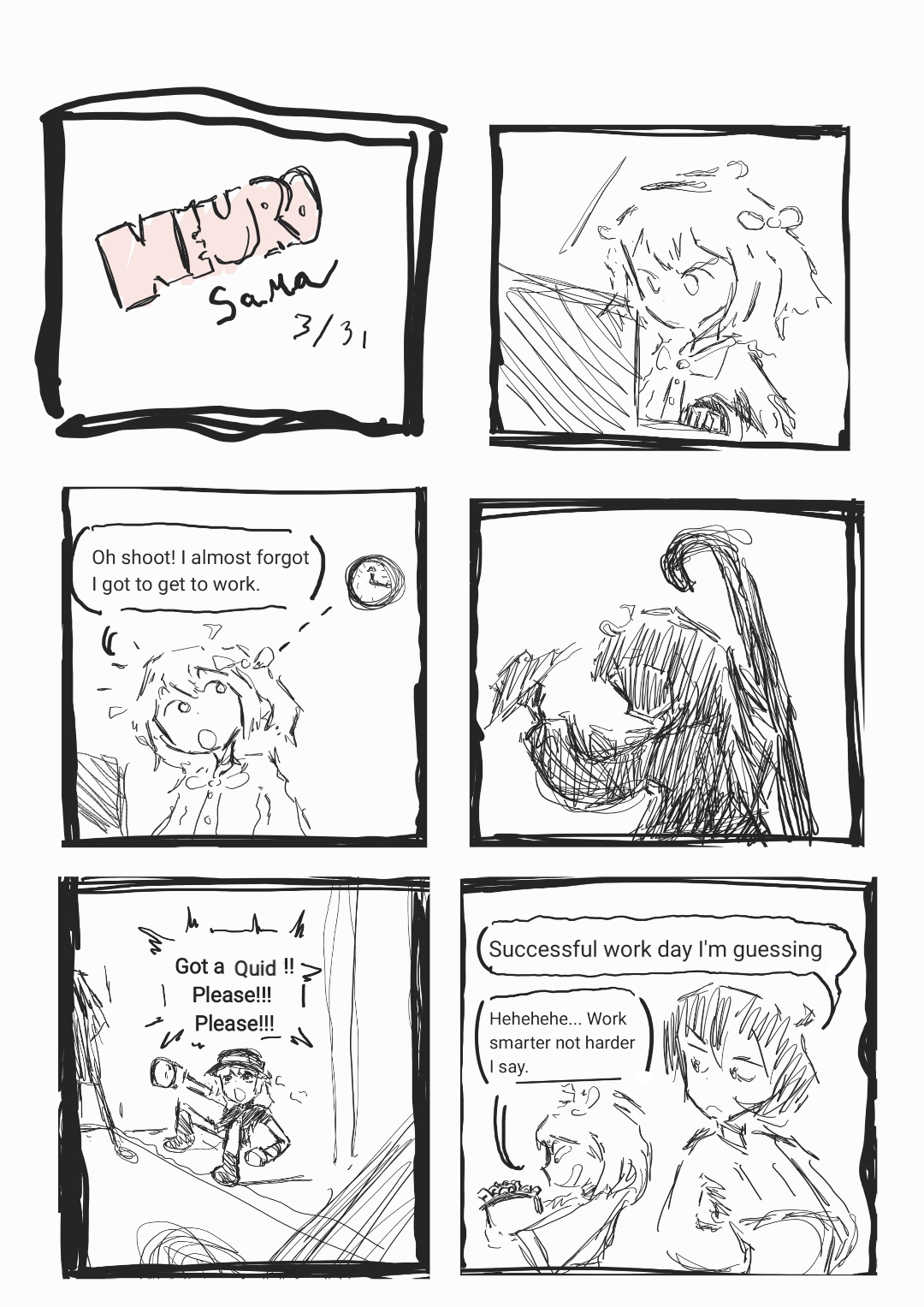 Reposting Weekly Neuro comic 5# 3/31 Neuro's second job. Since I'm reposting, I added something because of a funny thing pointed out/realized. (Also, for some reason had another anon acting like me, replying to others, fuckin weirdo.)Past comics (use the archives):>>110301865>>110418655>>110526530>>110683025