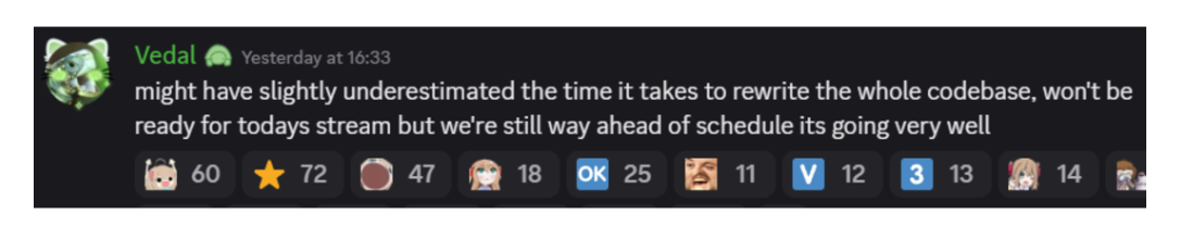 >>110714482This breaks my heart. He sounds so depressed, this is terrible.He needs to stream more, starting with Dev streams, and then collabs with the girls, that will make him feel better.He loves to stream, he's the start of the show, he needs to do this or it's over. No no no no no Vedal please stop hurting yourself please come back you don't need to suffer anymore.