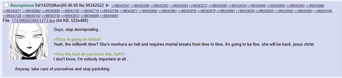 Did Dizzy really make a wall of text post in the thread when she went on hiatus out of nowhere before?