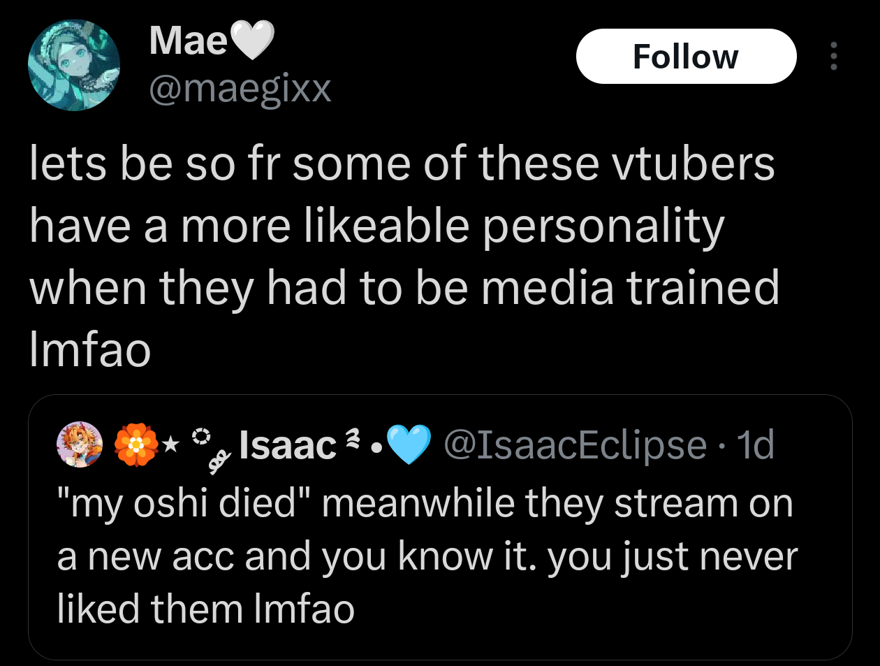 >The vtuber with the strongest numbers is a 60 year old hag
