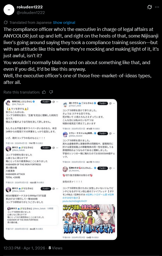 >niji can't compete in viewership>anycolor stock botted>nijiniggers lobsteredGood day
