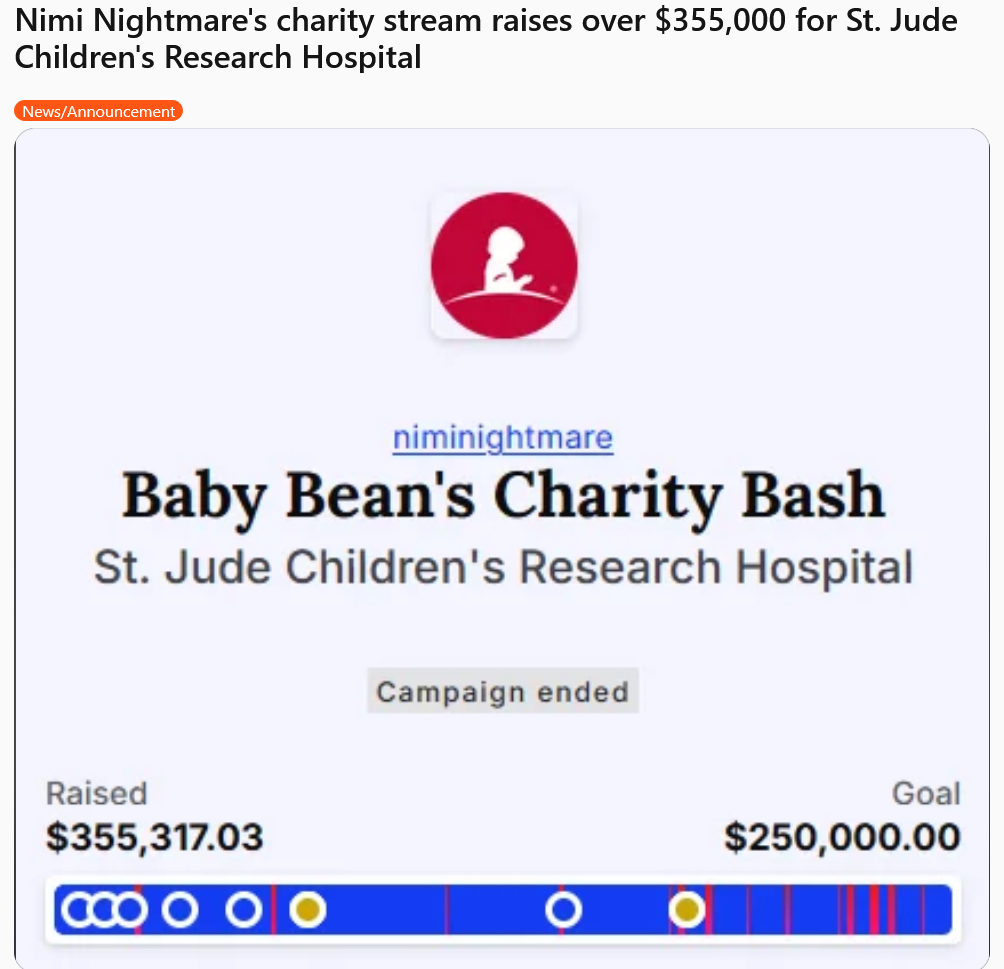 Subaru's charity thing only got 40k dollars despite being a 3D stream, having Lamy and Noel and being a tearjerker story into donating to a children hospital.Dissapointing...