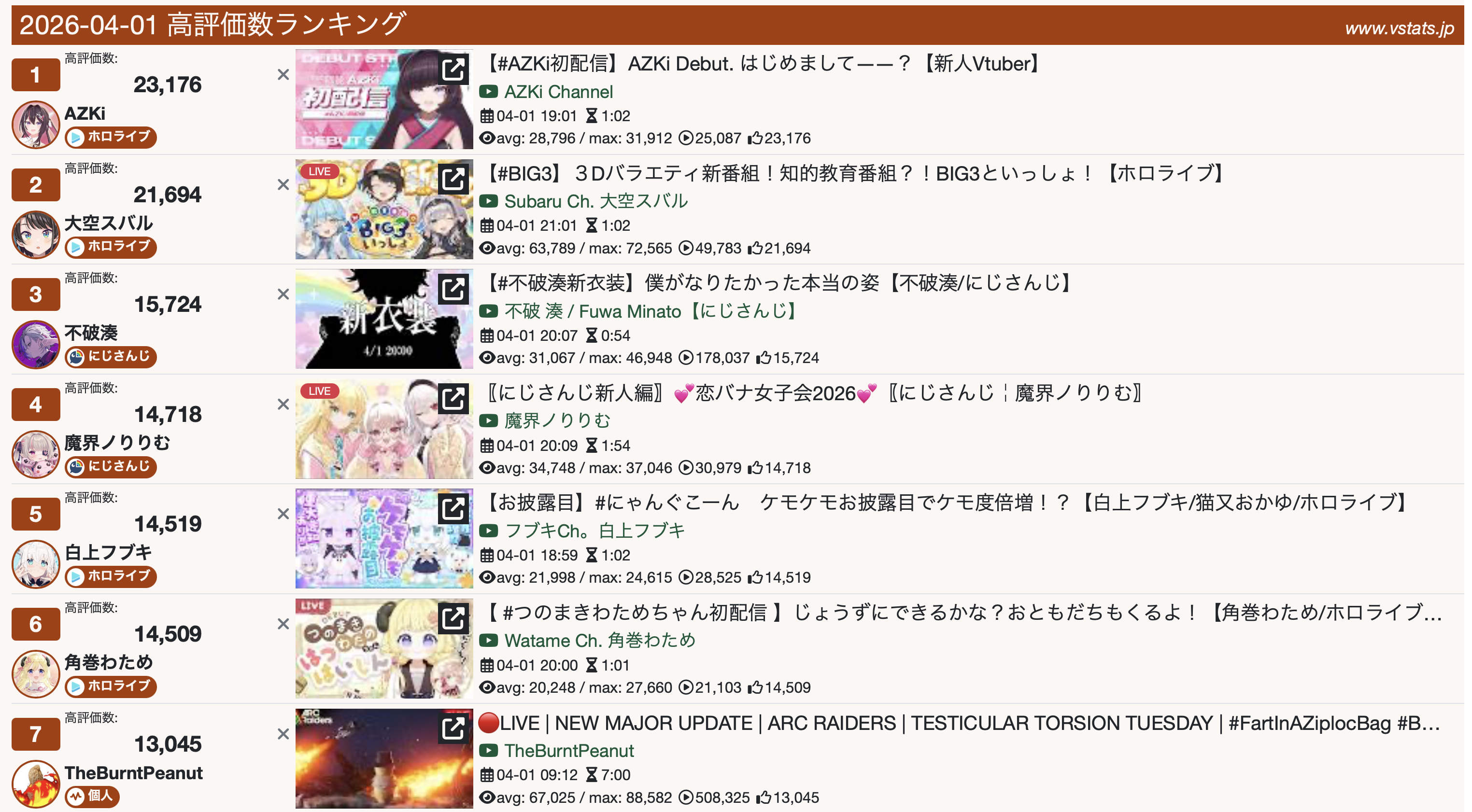 *GENERAL NUMBERFAG SITES*>https://playboard.co/en/>http://ikioi-ranking.com/>https://vrabi.net/>https://vtubertracker.info/en>https://live-ranking.userlocal.jp/vtuber-rankingHololive sites>https://www.hololyzer.net/youtube/index.html>https://trackholo.live/en/>https://holo-spotify-stats.jirikunes.eu/>https://holo-tracker.vercel.app/>https://www.holostats.com/Twitch>https://sullygnome.com/>https://twitchtracker.com/>https://stats.roki.sh/>https://streamscharts.com/
