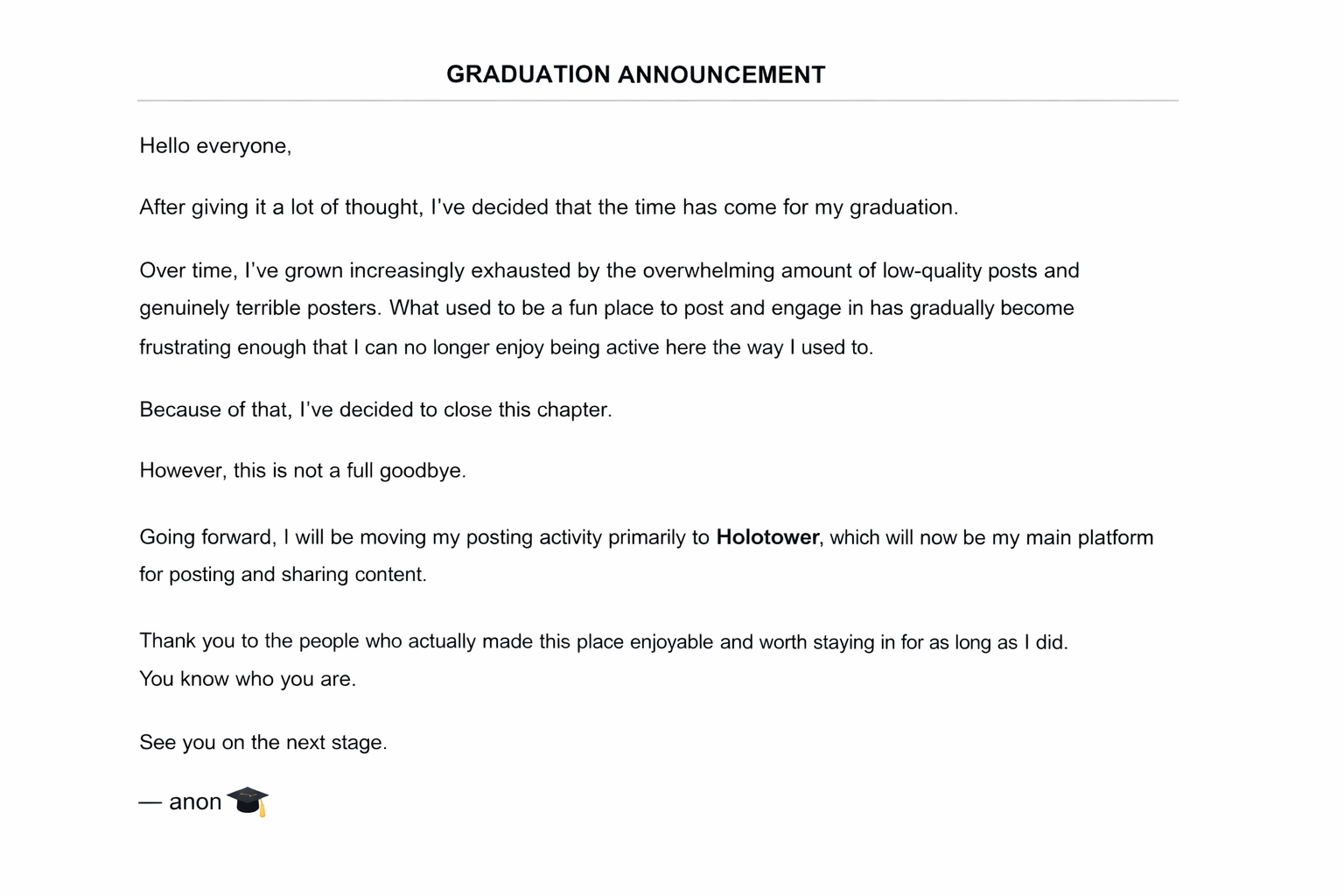 Haachama is gone, not april fools.
