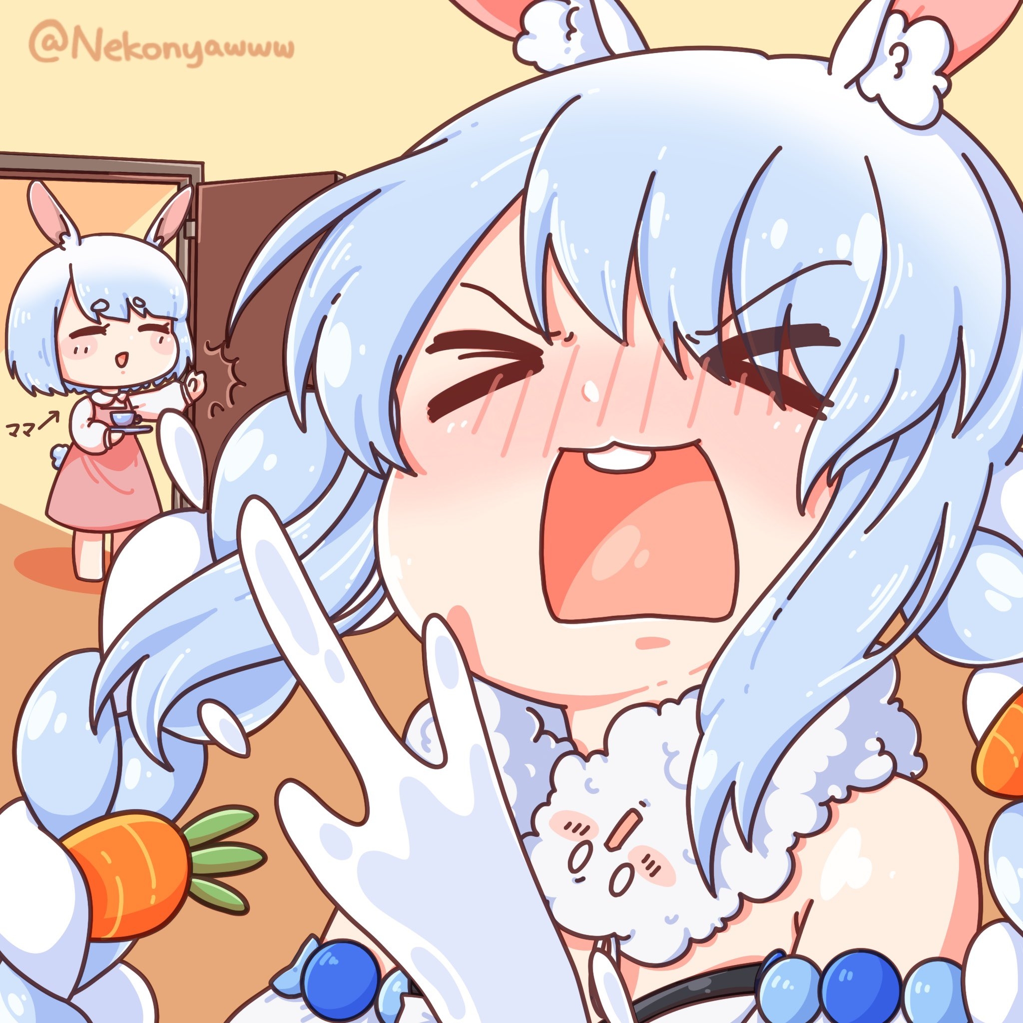 Koyo debuting her fuzzy chibi mascot in VR chat along with Marinehttps://www.youtube.com/watch?v=YUVNyKC4TYY