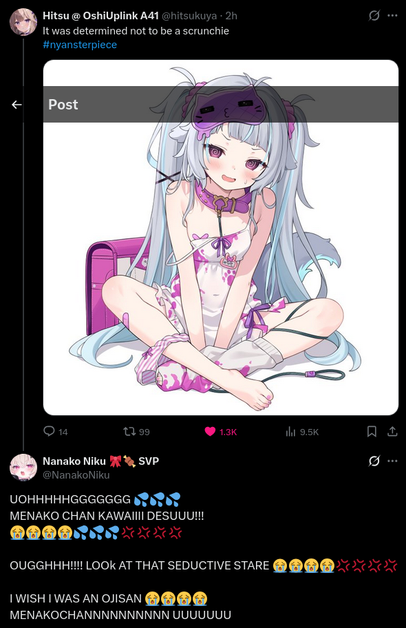 >>110721905There are also some ryona vtubers that every time they do enema/pee desperation streams release in them