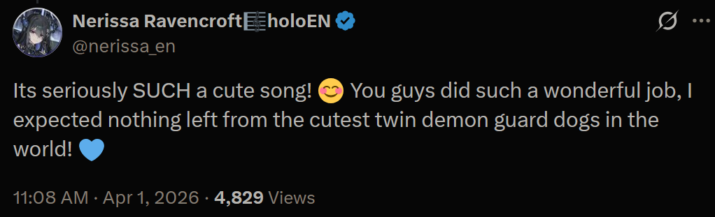 https://x.com/nerissa_en/status/2039359319557456234Supportive Rissa cheering on her dogs