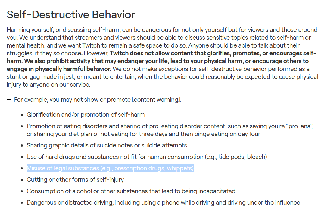 Isn't streaming on drugs against TOS?
