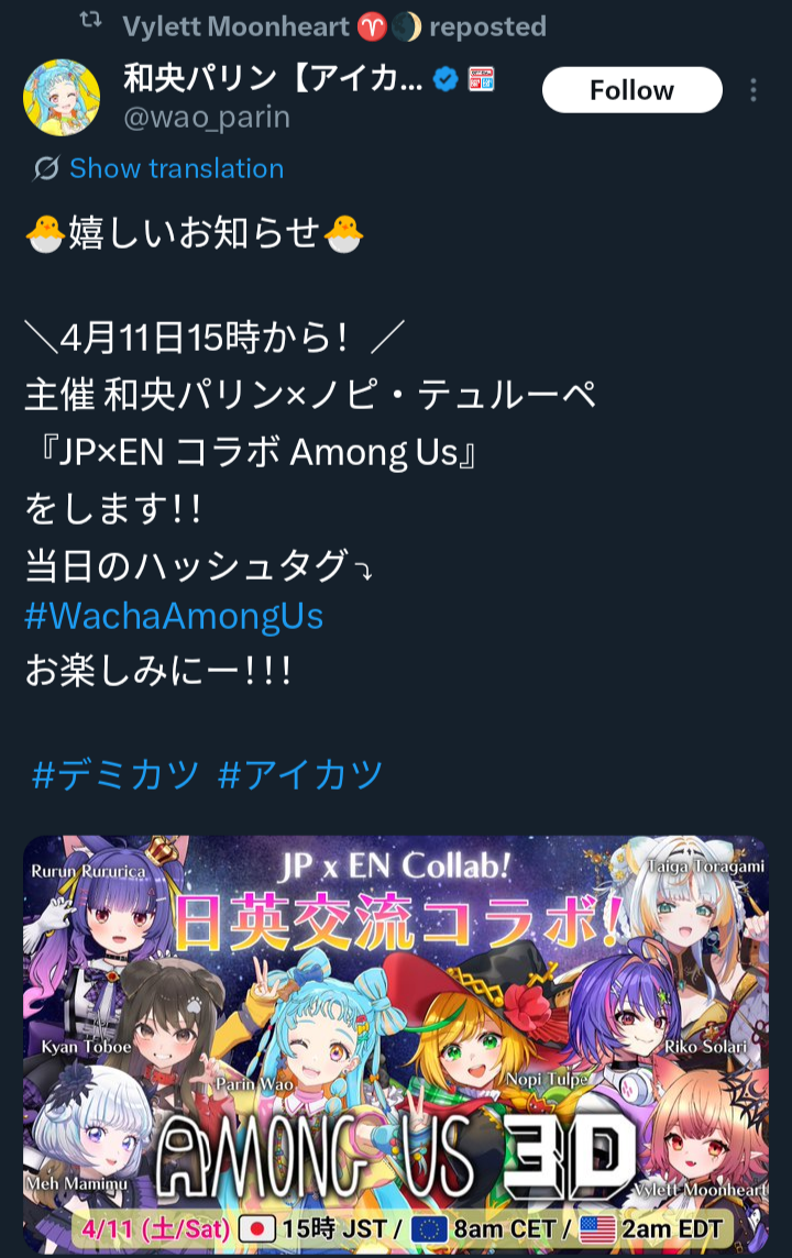 How would you rate April Fool's this year>Chiakihttps://x.com/ChiakiKatsumi/status/2039387318516126098>Kannahttps://youtu.be/AIPq1o1JNKM>Mimihttps://x.com/Miyuora/status/2039373254037754349>Rakiuhhhhhhhttps://x.com/TendiesB/status/2039451000847601962>Lulihttps://youtu.be/QKv1GcpjPn0>Daiyahttps://youtu.be/tumQVdv0gt8https://x.com/DaiyaFortuna/status/2039408735311831289>Toffee3 exams>Chiohttps://www.youtube.com/watch?v=h0lJN4j4viE>Vyletthttps://www.youtube.com/watch?v=gnhi7YmixXI