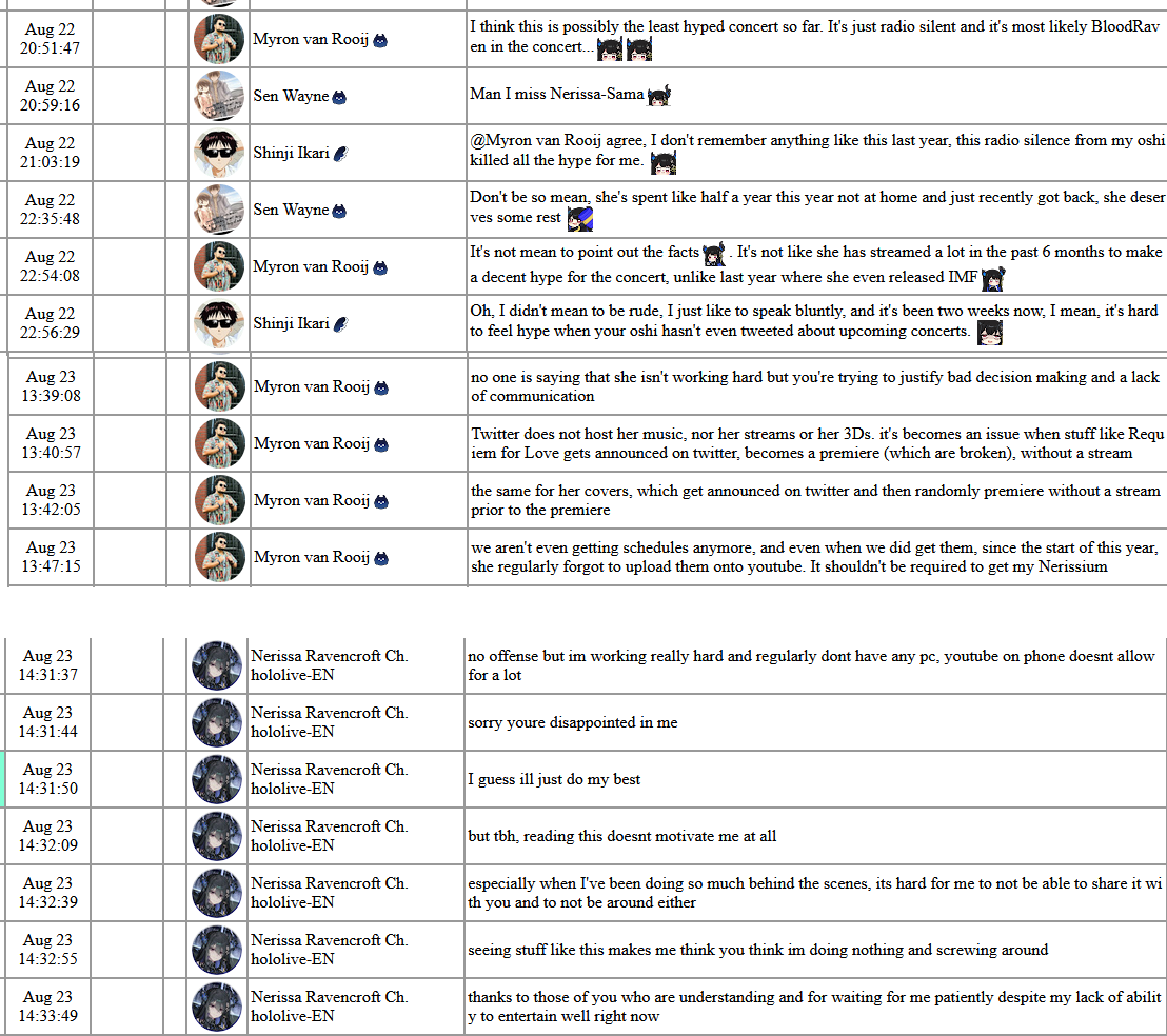 >>110758157I don't care much for online drama but a unicorn threw shit at Nerissa on social media. It's not a shock that Kiara and Nerissa both sided with Rima Evenstar when she roasted that unicorn. Kiara did it with a raid and Nerissa's RM did it by following Rima on Twitter.>>110758262>You deserve the worst death imaginable outfitschizoAnon it was obvious how Nerissa was going to react after Myron attacked her for mentioning Holostars. None of the Hololive talents are okay with unicorns attacking their coworkers and they also circled the wagons with Kronii.>>110758878>Kiara accidentally raidedDo you also think it was an accident when she did cosplay of Nimi Nightmare?