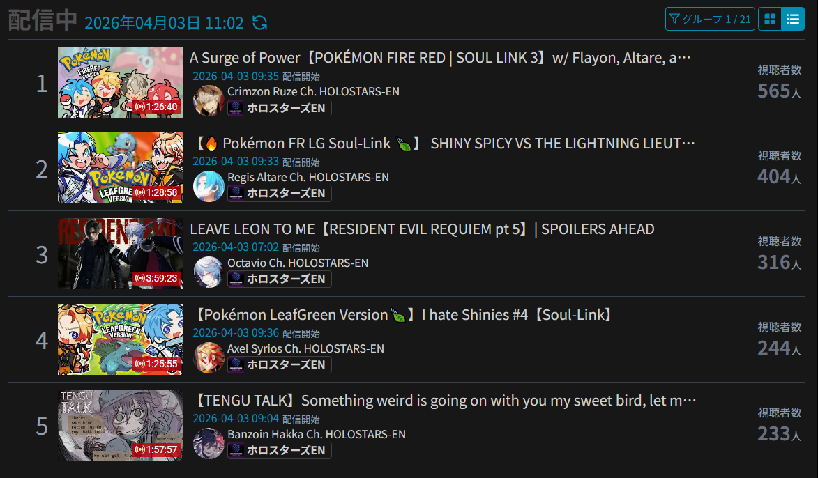 *GENERAL NUMBERFAG SITES*>https://playboard.co/en/>http://ikioi-ranking.com/>https://vrabi.net/>https://vtubertracker.info/en>https://live-ranking.userlocal.jp/vtuber-rankingHololive sites>https://www.hololyzer.net/youtube/index.html>https://trackholo.live/en/>https://holo-spotify-stats.jirikunes.eu/>https://holo-tracker.vercel.app/>https://www.holostats.com/Twitch>https://sullygnome.com/>https://twitchtracker.com/>https://stats.roki.sh/>https://streamscharts.com/