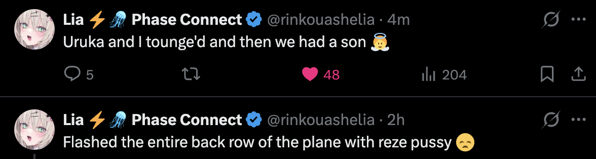 ϟ Lia Liker's Secret Clubhouse ϟ>NO GIRLS ALLOWEDChannel: https://www.youtube.com/c/RinkouAsheliaTwitter: https://twitter.com/rinkouasheliaSchedule: you tell meϟ Next time, on Lia ϟ>Lia is going on international breakϟ Previously on Lia ϟ>farewell drunk tumblrcore karaoke and deku impressionshttps://www.youtube.com/watch?v=2GB1dVFwFBA>Ashelia and Tenma fruit love slophttps://www.youtube.com/watch?v=-hat1WChPJ8ϟ Current Events ϟ>PhaseCon is on June 13-14! tickets are on sale NOW!https://con.phase-connect.com/>Signed digital prints of the Valentines 3d live are for sale now and cheap!https://vlive-unite.booth.pm/items/8086571>Wow! you can buy Lia's new 3d outfit!https://vlive-unite.booth.pm/items/7982255>Lia 3D live debut!https://www.youtube.com/watch?v=IRL-zrFDWocϟ Teen Idol Sensation ϟ>Lia the baby ballerina!https://www.youtube.com/watch?v=eFb9Bbpy1-I>3D debut duet with Mint!https://www.youtube.com/watch?v=xmbr-eO3Nc8>Marionette No Kokoro! [3D debut live]https://www.youtube.com/watch?v=Wuocvv0DMNA>World of Lia at the 2024 vtuber awards!https://www.youtube.com/watch?v=E2pK-g-UAWI>ANYC 2024 Teen Idol takes on New York concert!https://www.youtube.com/watch?v=3PKxPSiOmSUhttps://www.youtube.com/watch?v=bGIdCpB7uiE>Phase Origins x Mint hamtaro circlehttps://www.youtube.com/watch?v=ECALhhre7c8>Rising Higher- Lia Performance (Nikke 2.5 Year Anniversary)https://www.youtube.com/watch?v=bb4e7kYxSDA>Offkai 2025 Konton Boogie and Ashura-chan!https://www.youtube.com/watch?v=7ag9WLlnpGUhttps://www.youtube.com/watch?v=2oZKcGFJoN8>Offkai 2025 group performances! Kiraful Miracle Kirameiger & Write the Futurehttps://www.youtube.com/watch?v=EJFHGAXLIOohttps://www.youtube.com/watch?v=2_JMtDE8aAg>Valentines Day 3D Live!https://www.youtube.com/watch?v=1SAxhObRQHwhttps://www.youtube.com/watch?v=7xML6x6Z5dkϟ BUY BUY BUY ϟ>Visit the Lia shop! Plushies! Shirts! Dakis! Pins! Charms! Keychains! Oh my!https://pastebin.com/CwyAjBuc>Lia is in a real TCG!? OMG!https://oshipush.com/shop-2/>Free Lia 3D model! Yes, FREE!!!!https://ko-fi.com/s/409b01b34f>BUY THE LIA COFFEEhttps://shop.phase-connect.com/collections/coffee/products/black-coffee-ashelia-rinkou-custom-roastϟ Other useful links ϟ>New to Lia and are looking for VOD suggestions?https://rentry.org/LiaLikerVault>Free Lia desktop assistant!https://mega.nz/folder/JrtjCbhD#qZoHWqnoa8Qztf84Qlvq3Q>Cytube channel:cytuDOTbe/r/VODclubhouse (replace DOT with .)>Divegrass team:https://implyingrigged.info/wiki//lia/Remember to only love Lia, and never watch other girls. Only Lia will ever love you. ପ(๑•ᴗ•๑)ଓPrevious Thread: >>110728422