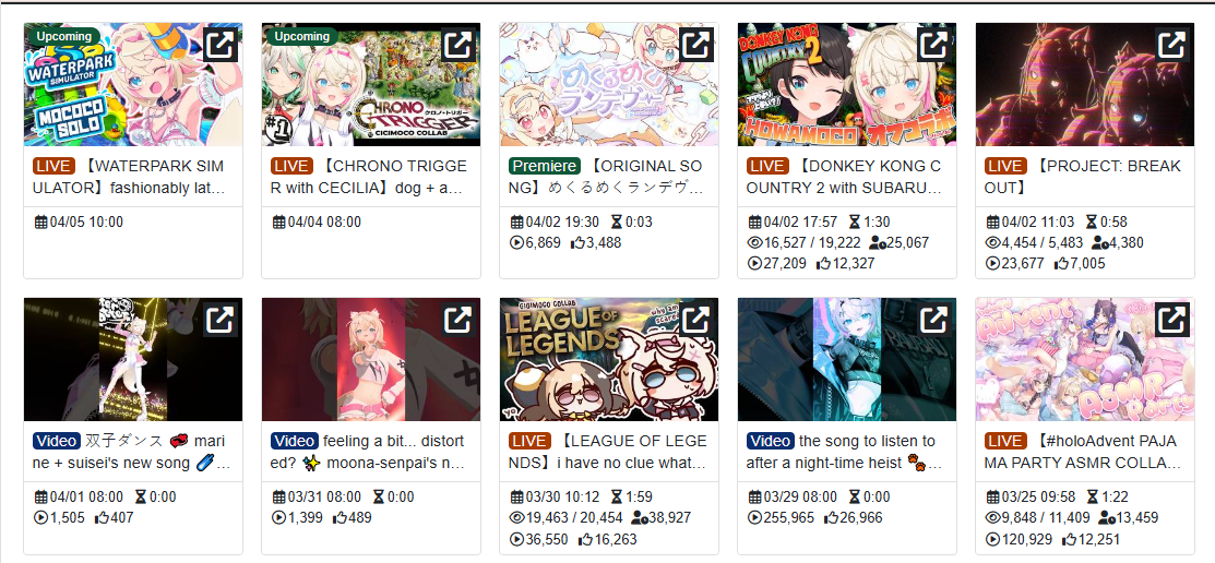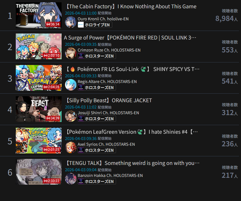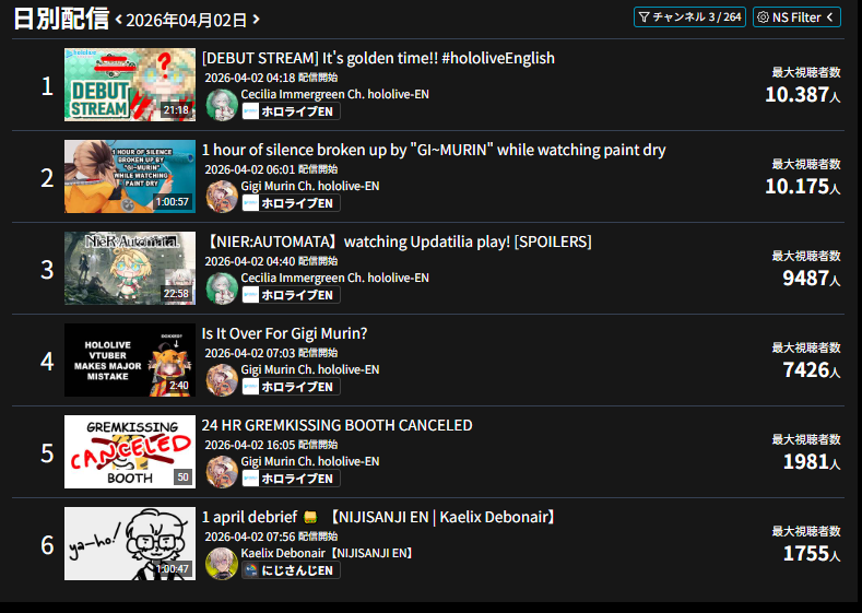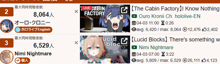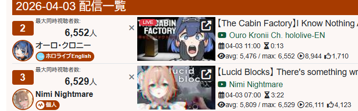 *GENERAL NUMBERFAG SITES*>https://playboard.co/en/>http://ikioi-ranking.com/>https://vrabi.net/>https://vtubertracker.info/en>https://live-ranking.userlocal.jp/vtuber-rankingHololive sites>https://www.hololyzer.net/youtube/index.html>https://trackholo.live/en/>https://holo-spotify-stats.jirikunes.eu/>https://holo-tracker.vercel.app/>https://www.holostats.com/Twitch>https://sullygnome.com/>https://twitchtracker.com/>https://stats.roki.sh/>https://streamscharts.com/