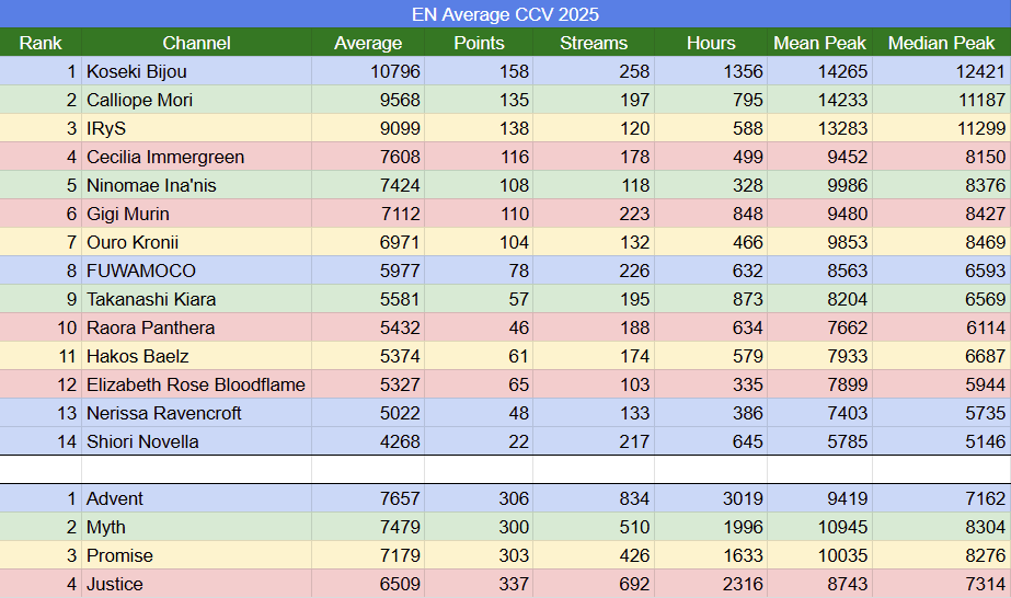 26 consecutive EN Golds for Hololive English, their second best mark in tally history.Their record is 40.