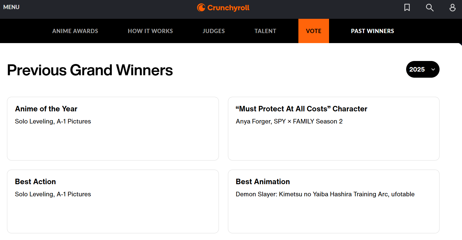 >>110762900>fucking solo leveling won anime of the year for 2025That's how I know these awards are worthless, if Solo Leveling was ever the best anime in a year then the state of the industry is more grim than I ever imagined