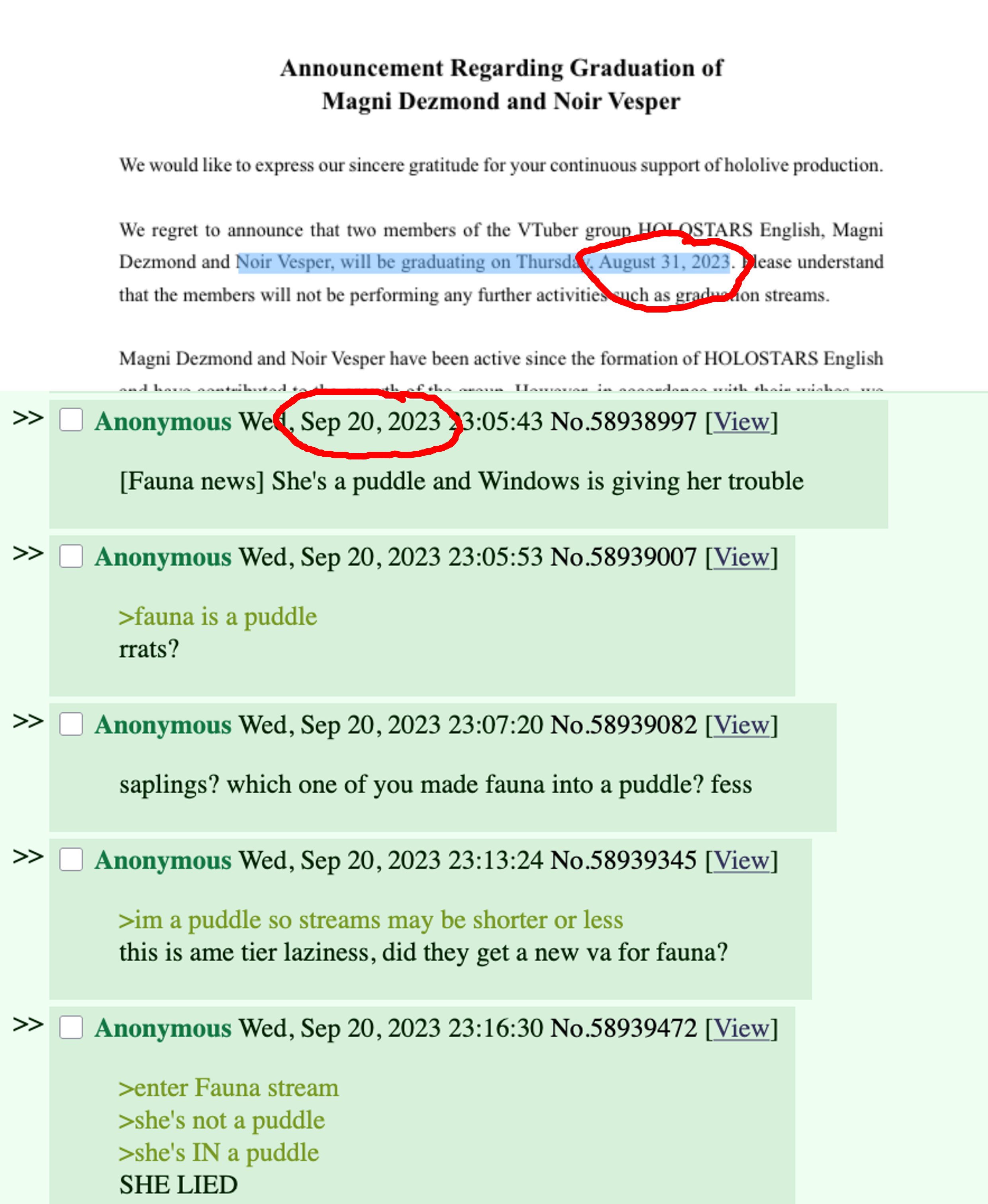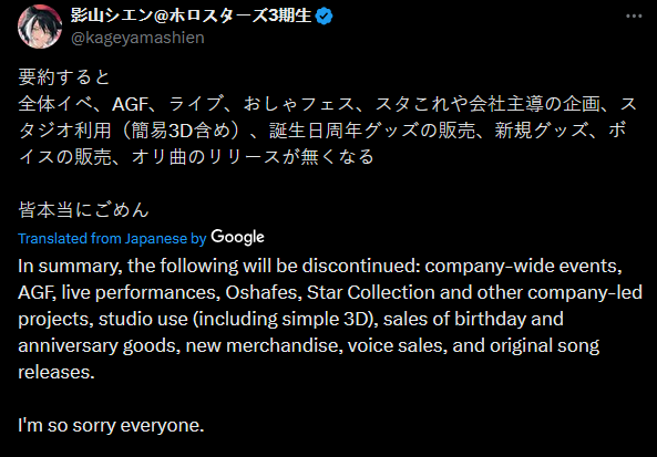 As I predicted, Fes and Kiara's concert are over so Cover is starting to release all the "bad" announcements. I suppose graduation announcements are gonna start trickling down next. Kronii will probably be this Sunday.
