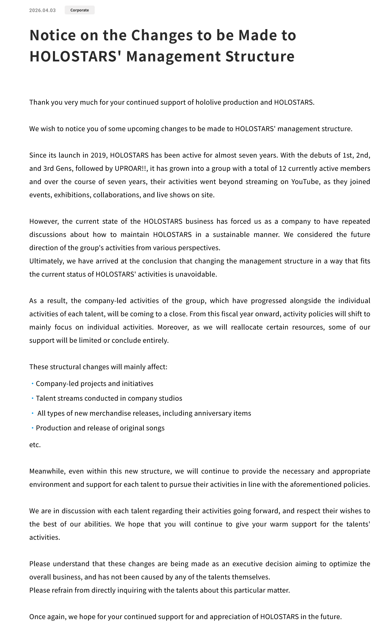 jwu (no really it's 3pm) - So they just fired every Stars member they have, no 2 weeks notice or anything? Or am I misunderstanding? If so, I didn't know companies could just axe a whole branch of people without a prior notice (cause you'd see doomposting beforehand), is it a Japanese thing?Will they be forfeiting the models and everything too?