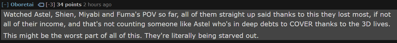 >cover: suisei how can we get more funds to support your new agency Studio STELLAR?>suisei: lets cut some funds from the homoJPBASED