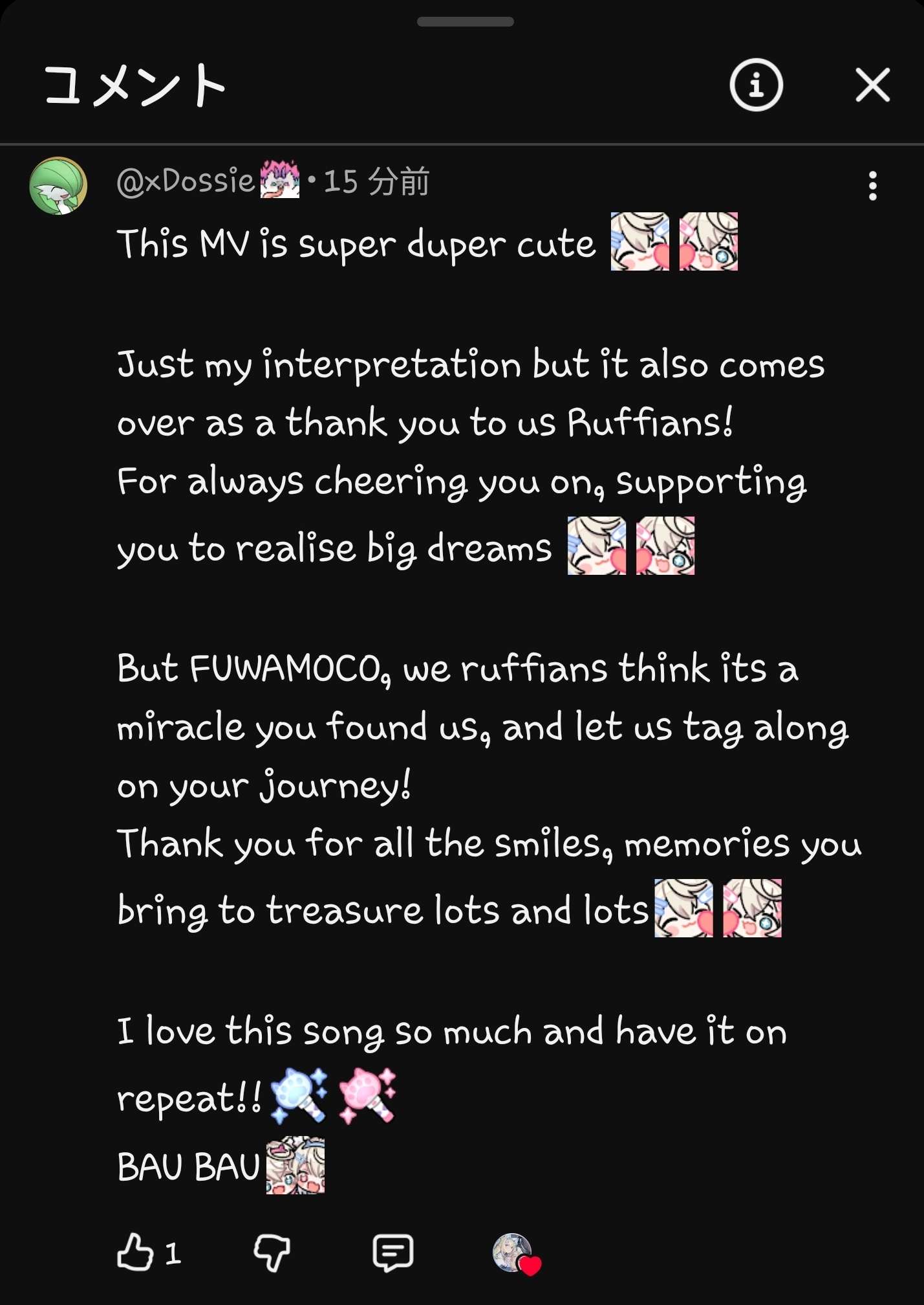 >>110795880Fuwawa BAU BAUs subconsciously every time she thinks about the Wuffians.