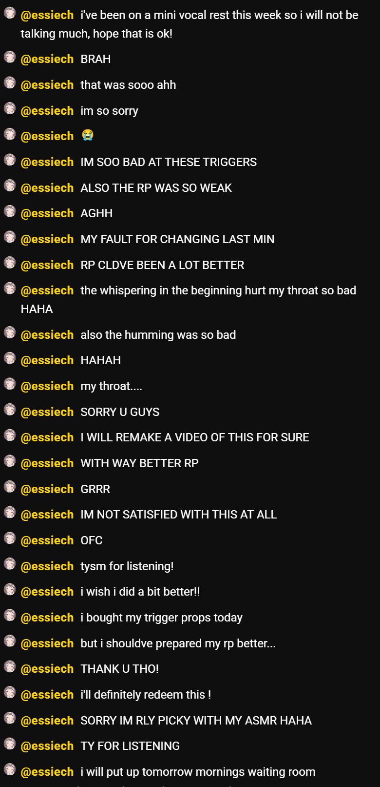 Menace is so goon-brained now that she has completely stopped caring about how everything actually sounds. She's not doing ASMR anymore, she's just gooning and letting us listen in. Not anything wrong with that of course, but she probably shouldn't be posted in ASMR threads anymore