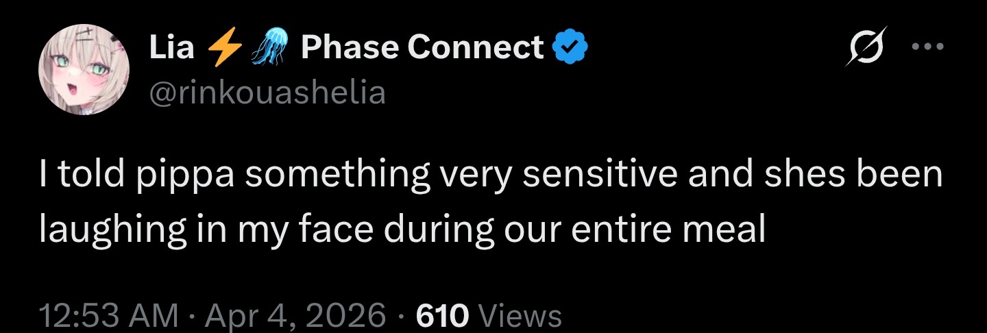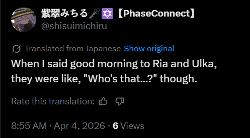▼ Phase Connect LinksOfficial Website: https://phase-connect.comOfficial Schedule: https://schedule.phase-connect.comOfficial Twitter: https://x.com/PhaseConnect | https://x.com/PhaseConnectJPOfficial Character References: https://rentry.org/pcgreferencesOfficial Twitch Archive Channels: https://rentry.org/pcgtwitcharchiveUnofficial Phase Connect Archives: https://rentry.org/pcgunofficialarchive––––––––––––––––––––––––––––––––––◆【Lia】https://x.com/rinkouashelia | https://youtube.com/RinkouAshelia | https://twitch.tv/asheliarinkou◆【Utatane Nasa】転寝ナサ (JP) https://x.com/UtataneNasa | https://youtube.com/UtataneNasa | https://twitch.tv/utatanenasa◆【Hakushika Iori】白鹿いおり (JP + EN) https://x.com/hakushikaiori | https://youtube.com/HakushikaIori | https://twitch.tv/iorihakushika◆【Fujikura Uruka】https://x.com/fujikurauruka | https://youtube.com/FujikuraUruka | https://twitch.tv/fujikurauruka◆【Shisui Michiru】紫翠みちる (JP) https://x.com/shisuimichiru | https://youtube.com/ShisuiMichiru | https://twitch.tv/michiru_shisui◆【Tenma Maemi】https://x.com/tenmamaemi | https://youtube.com/TenmaMaemi | https://twitch.tv/tenma◆【Pipkin Pippa】https://x.com/pipkinpippa | https://youtube.com/PipkinPippa | https://twitch.tv/pippa––––––––––––––––––––––––––––––––––◆【Kaneko Lumi】https://x.com/kaneko_lumi | https://youtube.com/KanekoLumi | https://twitch.tv/kanekolumi◆【Fuura Yuri】[Terminated] https://x.com/AmarisYuri | Archive: https://youtube.com/@TheNationalFuuraYuriArchive◆【Dizzy Dokuro】https://x.com/dizzydokuro | https://youtube.com/@dizzydokuro | https://twitch.tv/dizzydokuro◆【Jelly Hoshiumi】https://x.com/jellyhoshiumi | https://youtube.com/@jellyhoshiumi | https://twitch.tv/jellyhoshiumi◆【Ember Amane】https://x.com/emberamane | https://youtube.com/@EmberAmane | https://twitch.tv/emberamane◆【Clio Aite】https://x.com/ClioAite | https://youtube.com/@ClioAite | https://twitch.tv/clioaite◆【MariMari_en】https://x.com/MARIMARI_EN | https://youtube.com/@MARIMARI_EN | https://twitch.tv/marimari_en◆【Eepy Sleepy】https://x.com/EepySleepyCh | https://youtube.com/@EepySleepyCh | https://twitch.tv/EepySleepy––––––––––––––––––––––––––––––––––◆【Remilia Nephys】https://x.com/Remilia_Nephys | https://youtube.com/RemiliaNephys | https://twitch.tv/remilianephys◆【Chisaka Airi】https://x.com/ChisakaAiri | https://youtube.com/ChisakaAiri | https://twitch.tv/chisakaairi◆【Amanogawa Shiina】https://x.com/AmanogawaShiina | https://youtube.com/AmanogawaShiina | https://twitch.tv/amanogawashiina◆【Himemiya Rie】https://x.com/HimemiyaRie | https://youtube.com/HimemiyaRie | https://twitch.tv/himemiyarie◆【Erina Makina】https://x.com/ErinaMakina | https://youtube.com/ErinaMakina | https://twitch.tv/erinamakina◆【Komachi Panko】https://x.com/komachipanko | https://youtube.com/KomachiPanko | https://twitch.tv/komachipanko––––––––––––––––––––––––––––––––––◆【Runie Ruse】https://x.com/RunieRuse | https://youtube.com/@RunieRuse | https://twitch.tv/RunieRuse◆【Eimi Isami】https://x.com/eimiisami | https://youtube.com/@eimiisami | https://twitch.tv/eimiisami◆【Muu Muyu】https://x.com/Muu_Muyu | https://youtube.com/@MuuMuyu | https://twitch.tv/MuuMuyu◆【Hikanari Hina】https://x.com/HikanariHina | https://youtube.com/@HikanariHina | https://twitch.tv/HikanariHina◆【Saya Sairroxs】[Phase Citizen] https://x.com/sayasairroxs | https://youtube.com/@sayasairroxs | https://twitch.tv/sayasairroxs––––––––––––––––––––––––––––––––––◆【Kannagi Loki】巫ロキ (JP) https://x.com/kannagiloki | https://youtube.com/@kannagiloki◆【Kokoromo Memory】[Phase Citizen] https://x.com/kokoromomemory | https://youtube.com/@kokoromomemory_ | https://twitch.tv/kokoromomemory◆【Gram Pico】倉夢ぴこ (JP) https://x.com/grampico_ | https://youtube.com/@grampico | https://twitch.tv/grampico◆【Ayase Yuu】絢世ユウ (JP) https://x.com/ayaseyuuu | https://youtube.com/@ayaseyuu | https://twitch.tv/ayaseyuu_◆【Kaminari Clara】[Graduated] https://x.com/kaminariclara_ | https://youtube.com/@kaminariclara | https://twitch.tv/kaminariclara––––––––––––––––––––––––––––––––––◆【Malice Evermore】https://x.com/MaliceEvermore | https://youtube.com/@maliceevermore | https://twitch.tv/maliceevermore◆【Nitya Nil】https://x.com/Nitya_Nil | https://youtube.com/@Nitya_Nil | https://twitch.tv/nitya_nil◆【Wilhelmina Frost】https://x.com/wilhelminafr0st | https://youtube.com/@wilhelminafrost | https://twitch.tv/wilhelminafrost◆【Bibi Biscuit】https://x.com/BibiBiscuitCh | https://youtube.com/@bibibiscuitch | https://twitch.tv/bibibiscuitch◆【Anya Nyabyss】https://x.com/AnyaNyabyss | https://youtube.com/@AnyaNyabyss | https://twitch.tv/anyanyabyss◆【Sinon Sinfonia】https://x.com/SinonSinfonia | https://youtube.com/@SinonSinfonia | https://twitch.tv/sinonsinfoniaPrevious Thread: >>110795242