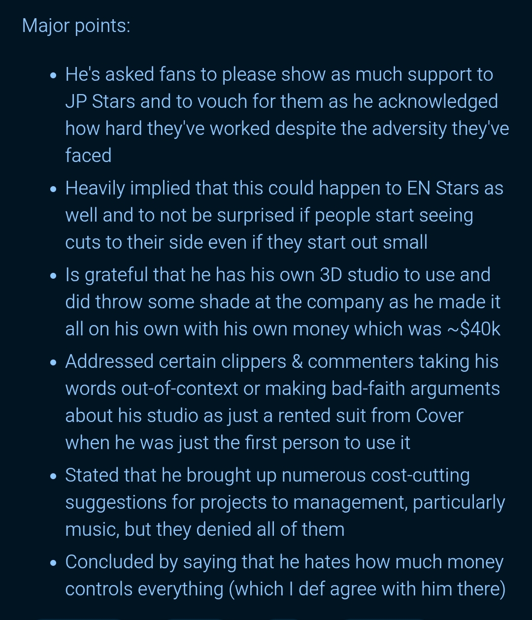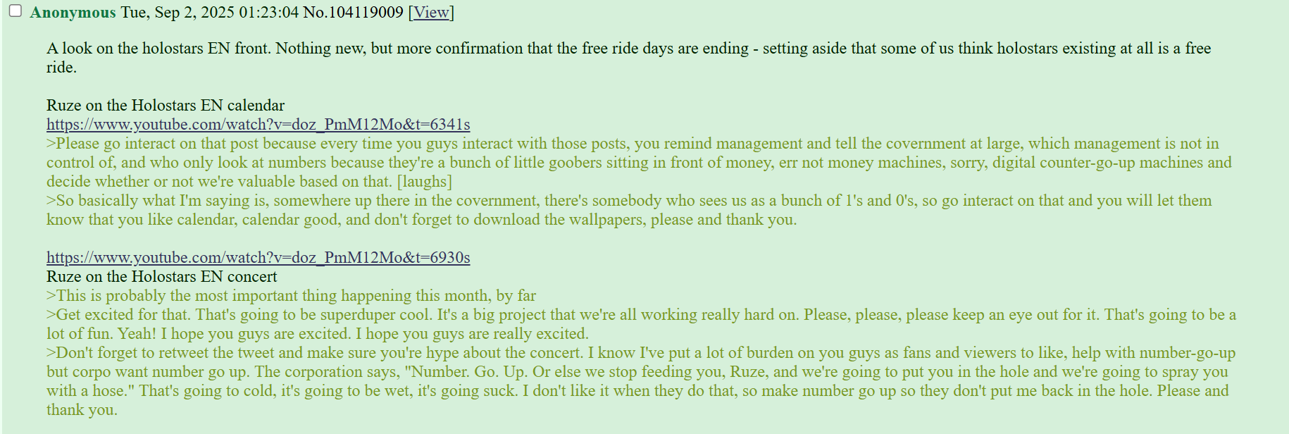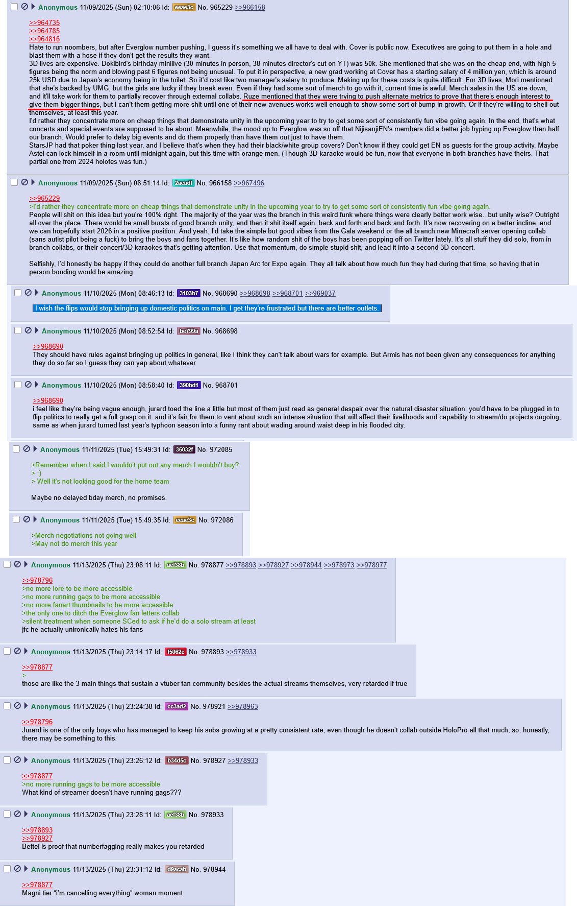 I'm not one of those but Cover should probably do more for ID unironically. Not about the business side specifically but the living conditions of their employees