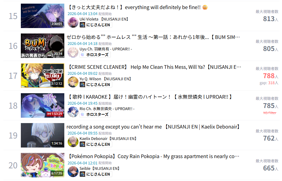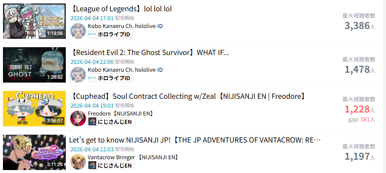 >>110809267They're stuck in 2023Modern holoID is larger than NijiEN and Phase. They sometimes even mog Nimi.Iofi the least popular IDs median ccv is 400 higher than bettal, the most popular Homo.