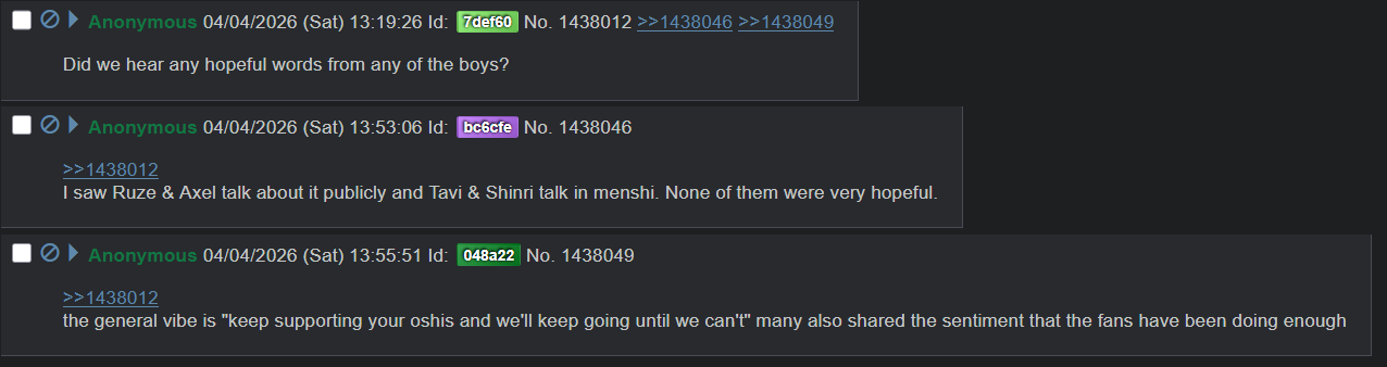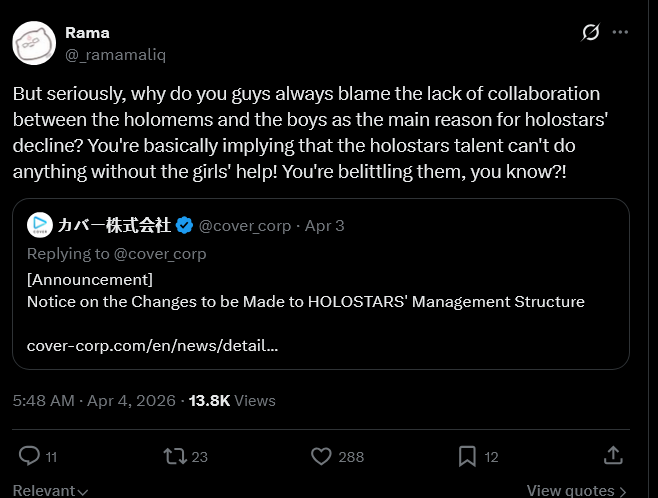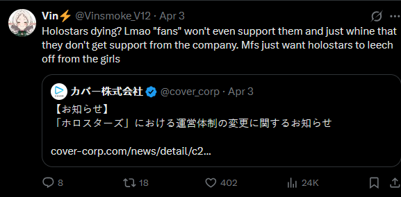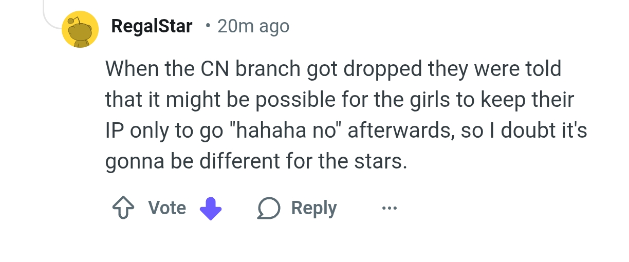 Best way Cover could let go of the ID branch and the lower end JP and EN members is by letting them keep their model/IP/name. That way Cover won't get too much hate when the necessary deed is done