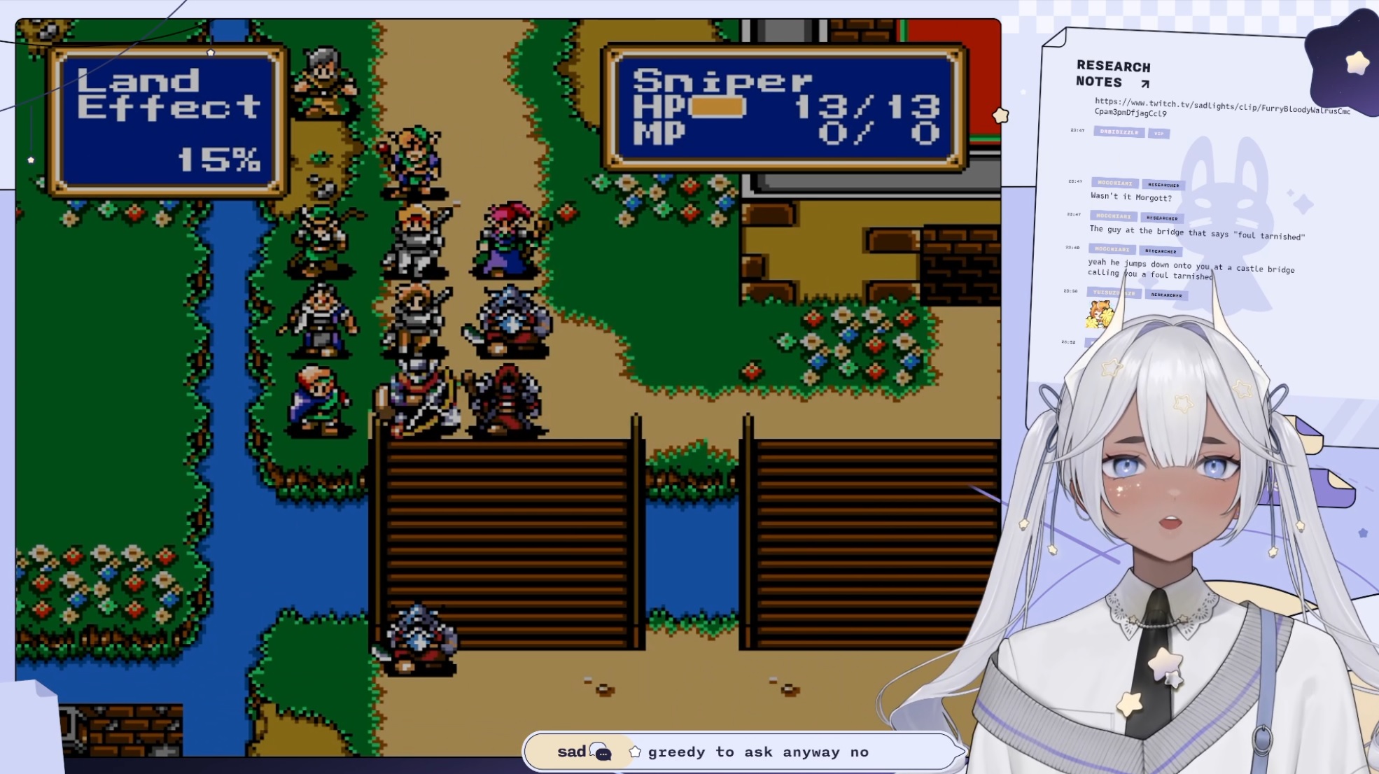 Sad is playing Shining Force 1https://www.twitch.tv/sadlightshttps://www.youtube.com/watch?v=FF3HR3nrKio