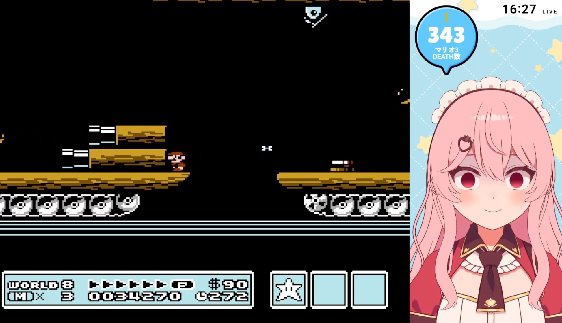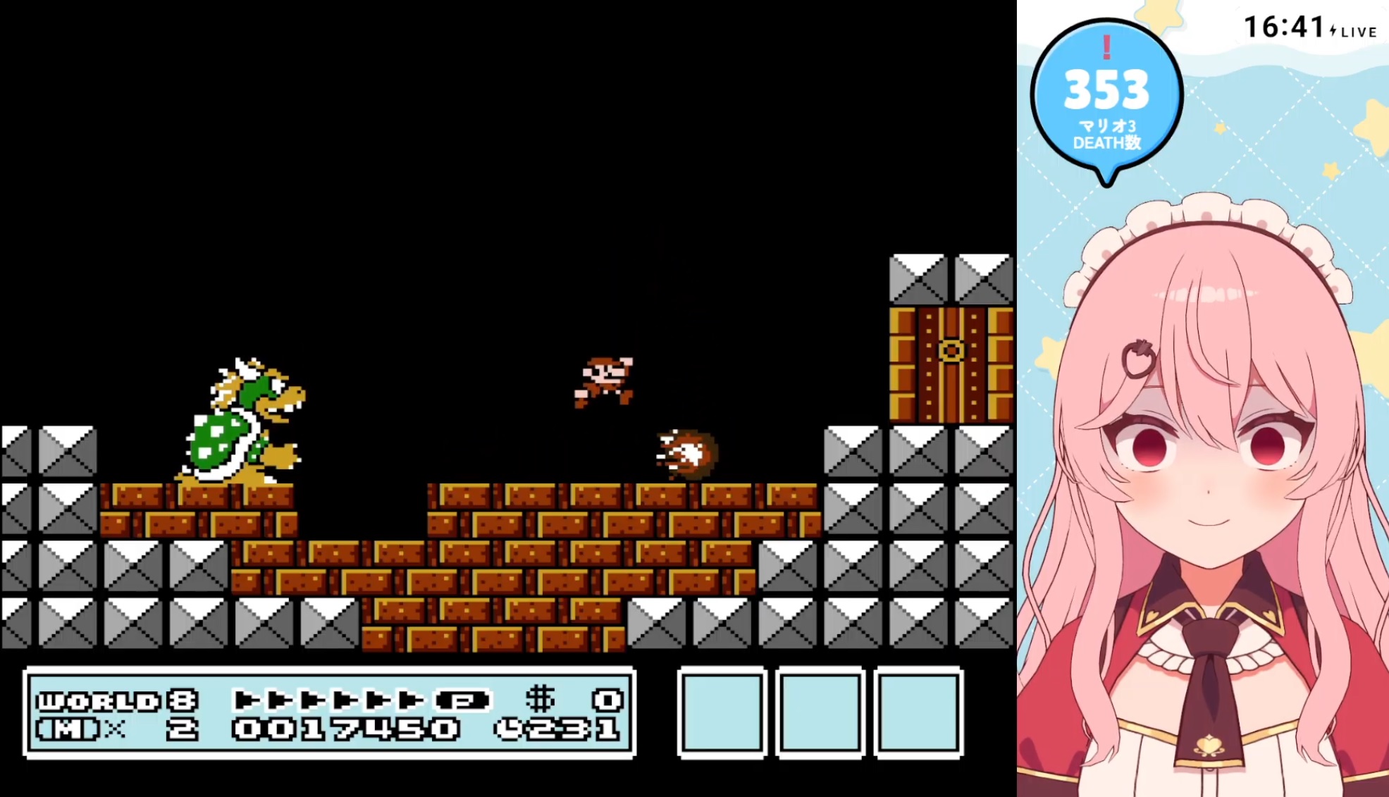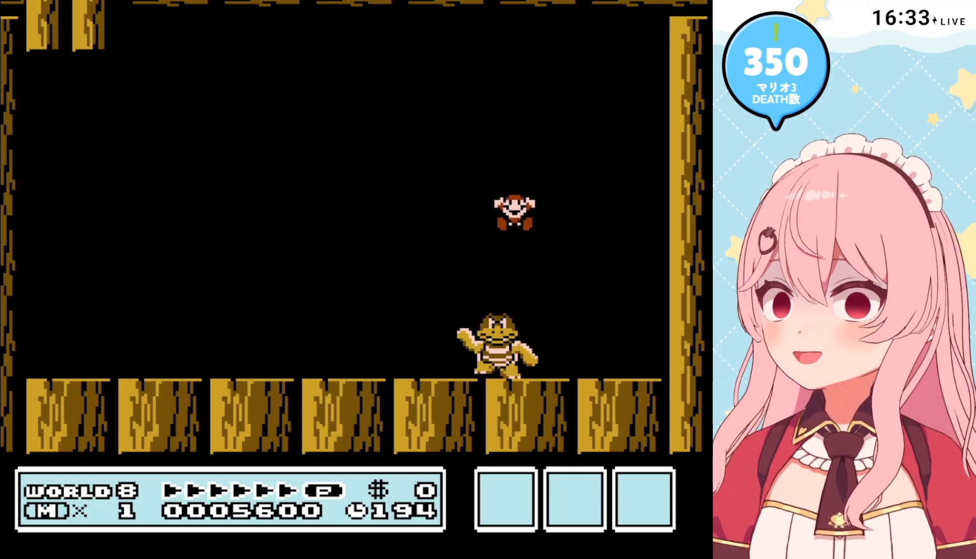 Meicha is playing Super Mario bros 3, in world 8 https://www.youtube.com/watch?v=yQLCo2IV1ro
