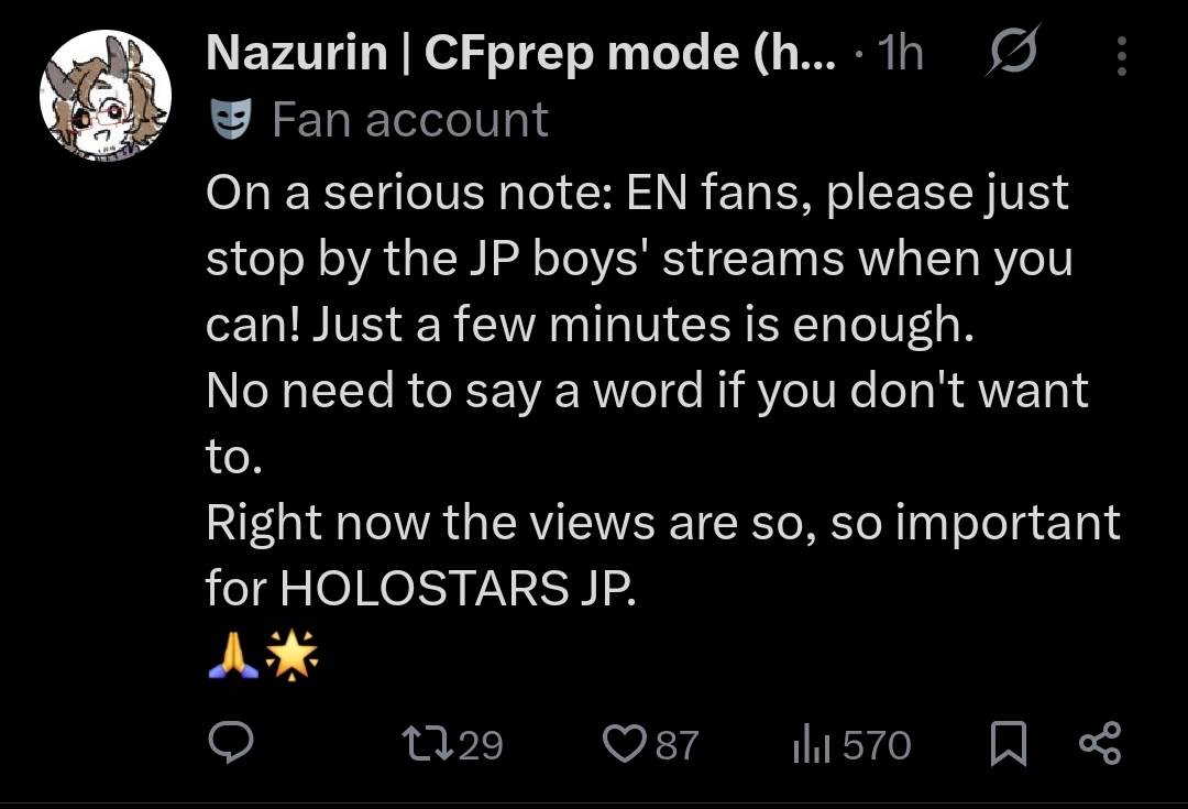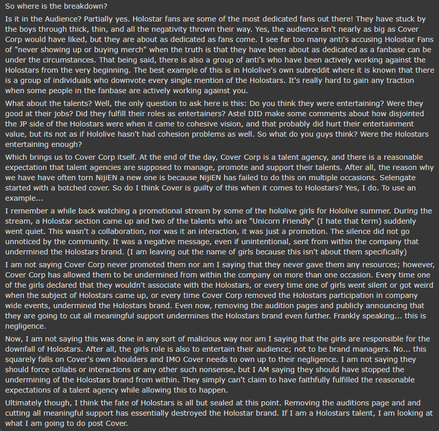 >>110842483>Holostar fans are some of the most dedicated fans out there!Stopped reading right there.