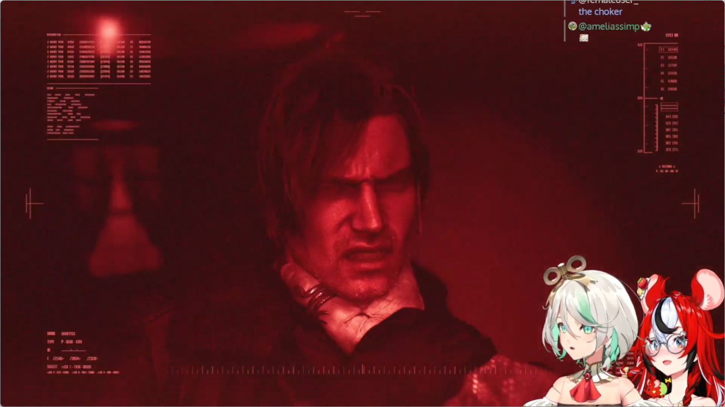 Leon is literally catnip for women, I have not seen such thirst for a game character since Sephy back in the day. Also brrats, your oshi is weaker to horror than I thought with RE7 despite how gruff she seems. Meanwhile babygirl Rissa is stoneface with horror.