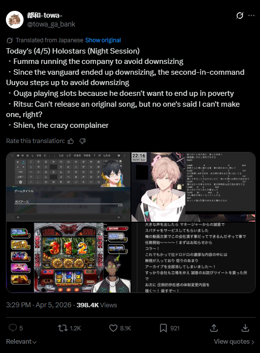 >>110838265Okay I kinda love this "Holostars not giving a fuck and throwing shade at Cover" arc right now. And besides, what's Cover gonna do if the shade gets too dark? Fire them???