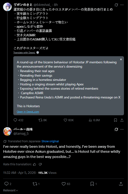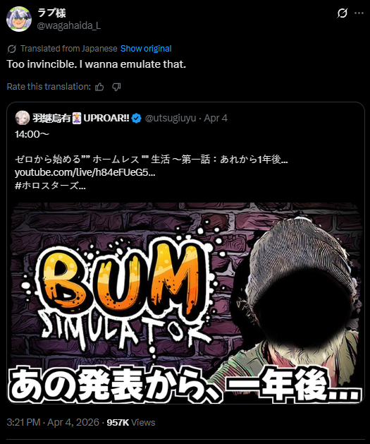 Homo making fun of Cover and HoloEarthhttps://x.com/yatogamifuma/status/2040761254189699345