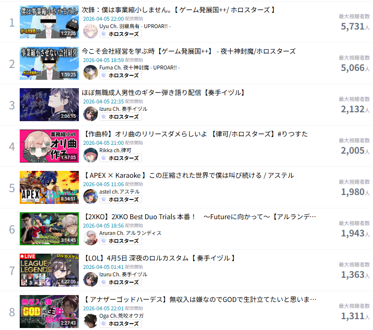 >>110838438it's re9 kronii and biboo got 12k and 13k on their first stream