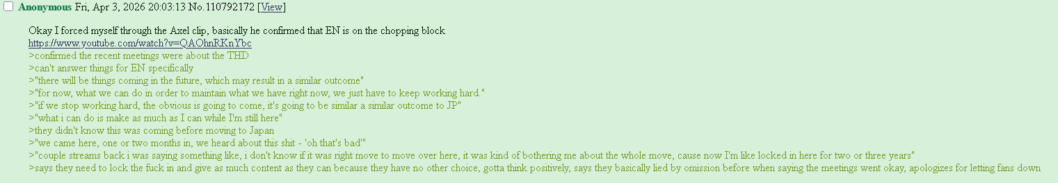 One of the JP homos just posted a massive yab rrat on his PL that concerns both HoloJP and HoloEN.Oof bros, I think this is actually it. There's no recovering from this