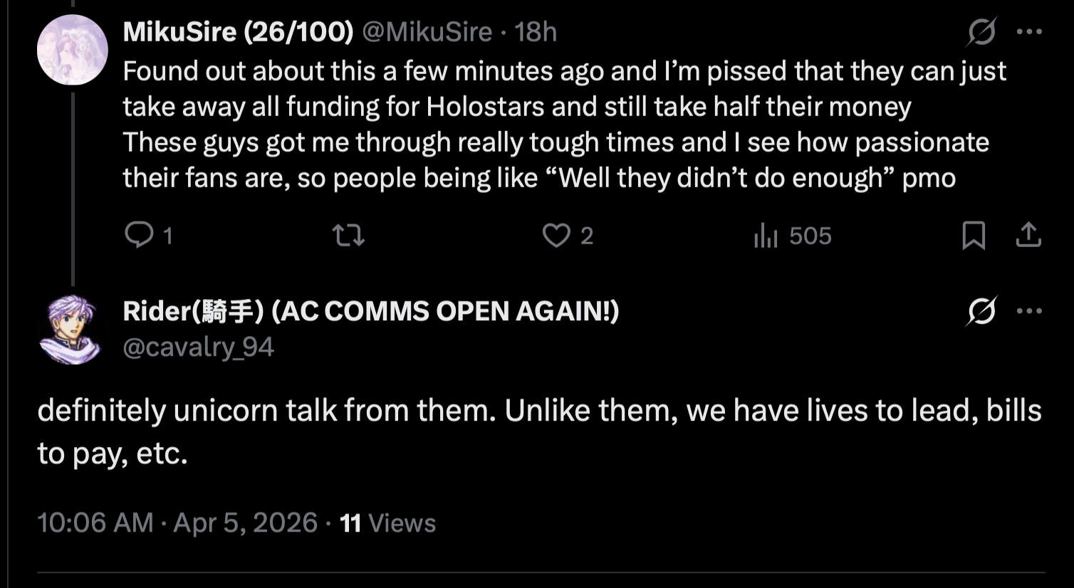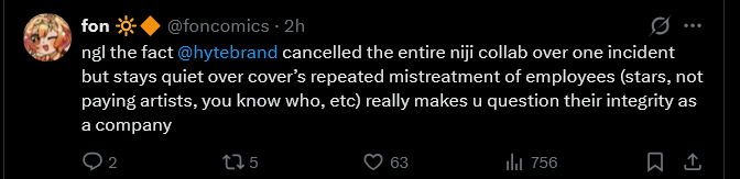 They cut the homos support because their opportunity cost is way too high to justify having the same support as Hololive. It's that simple.