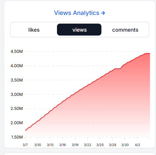 it's not the exponential growth of an algo pull viral hit, it just keeps rising