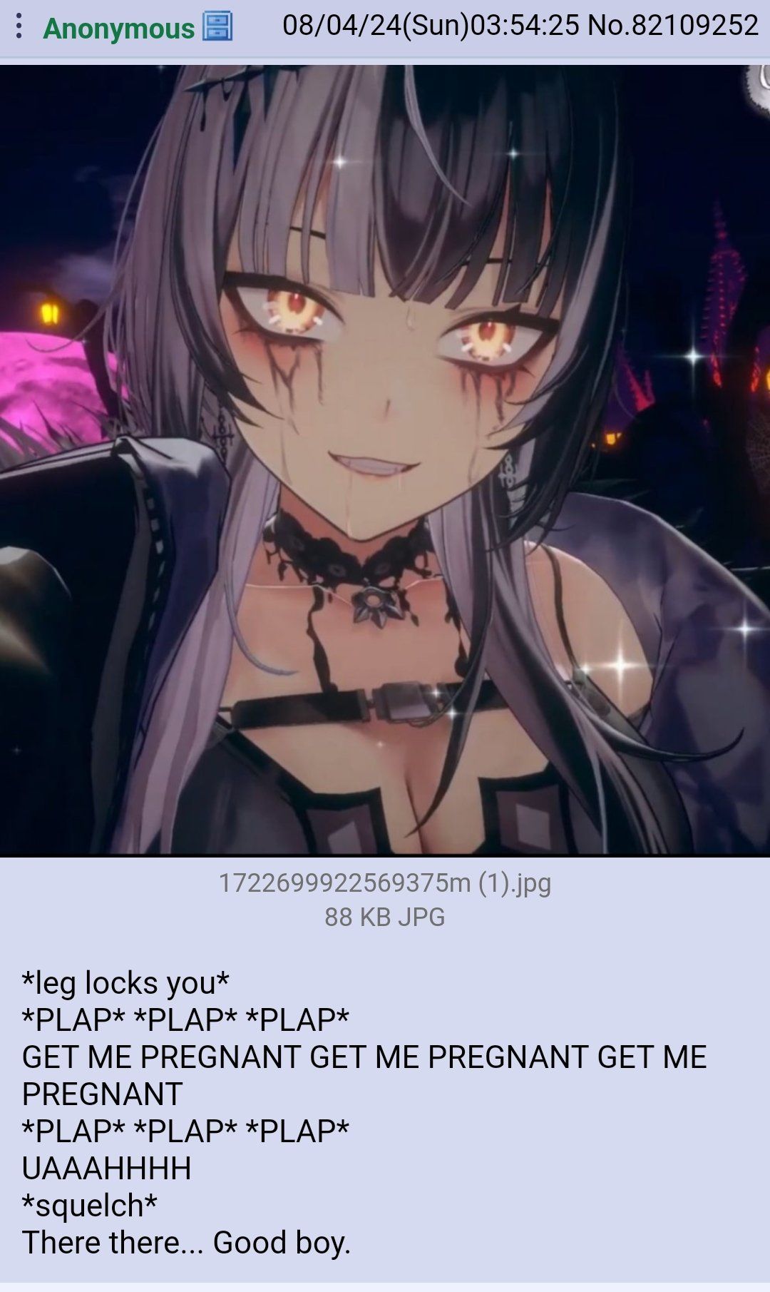 >>110852034>didn't ask when I nuttted the first time earlier while she was still liveah i seemaybe i will save something up for squ since she looks very good lately